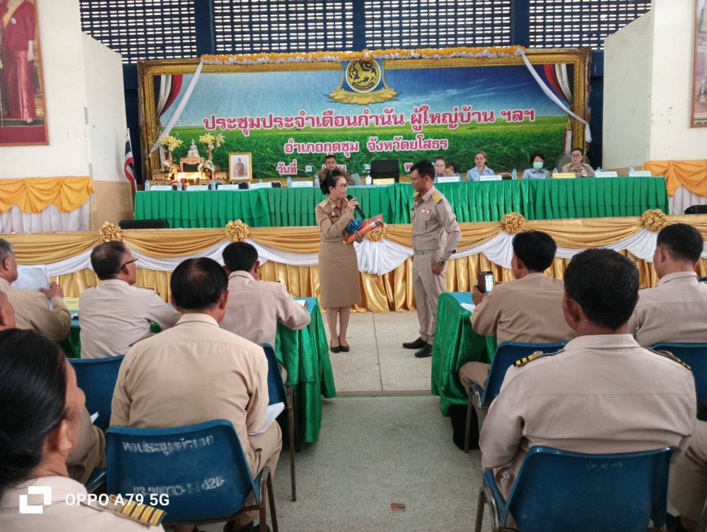ว่าที่ร้อยตรีฐิติวัฒน์ แขมคำ อัยการจังหวัดคุ้มครองสิทธิและช่วยเหลือทางกฎหมายและการบังคับคดีจังหวัดยโสธร พร้อมเจ้าหน้าที่ เข้าร่วมประชุมประจำเดือนหัวหน้าส่วนราชการ กำนัน ผู้ใหญ่บ้าน ผู้นำชุมชน ฯลฯ ประจำเดือนมิถุนายน ๒๕๖๘ เพื่อเผยแพร่ ประชาสัมพันธ์ ภารกิจ หน้าที่ ของสำนักงานอัยการคุ้มครองสิทธิและช่วยเหลือทางกฎหมาย และสำนักงานอัยการสูงสุด ซักซ้อมแนวทางปฏิบัติงาน และติดตามผลการดำเนินงานของ “อาสาสมัครอัยการช่วยได้” ในเขตพื้นที่อำเภอกุดชุม และอำเภอป่าติ้ว