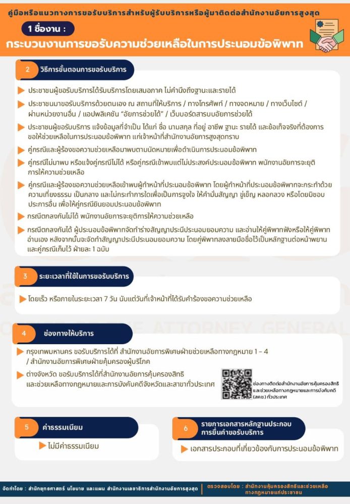 2. การให้คำปรึกษาปัญหาทางกฎหมาย ช่วยเหลือจัดทำนิติกรรมสัญญา และประนอมข้อพิพาท