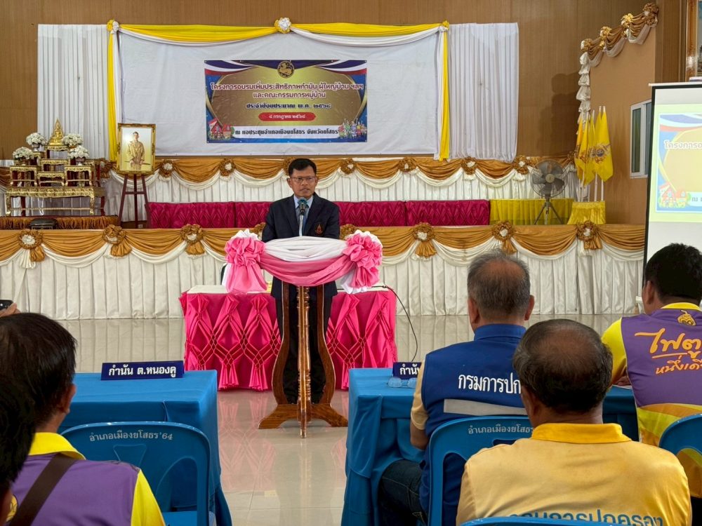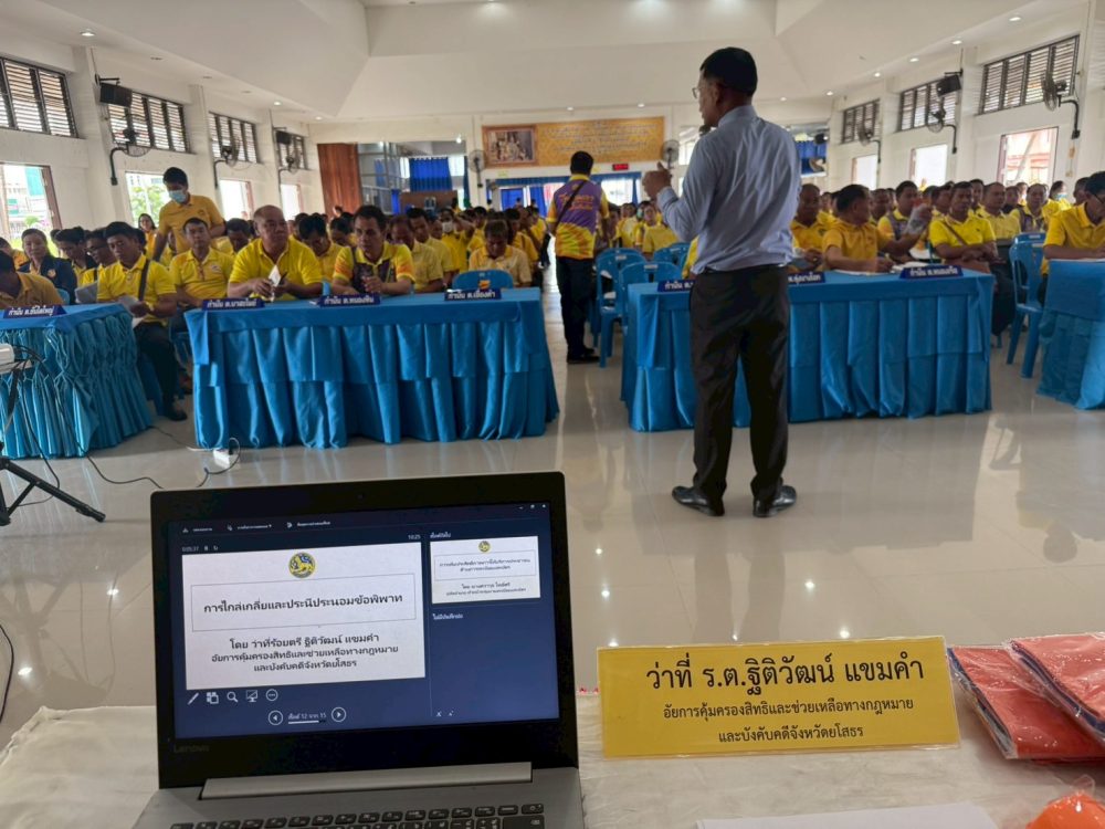 วันที่ ๘ กรกฎาคม ๒๕๖๘ เวลา ๐๙.๐๐ นาฬิกา ว่าที่ร้อยตรีฐิติวัฒน์ แขมคำ อัยการจังหวัดคุ้มครองสิทธิและช่วยเหลือทางกฎหมายและการบังคับคดีจังหวัดยโสธร เป็นวิทยากรโครงการฝึกอบรมเพิ่มประสิทธิภาพกำนัน ผู้ใหญ่บ้าน ฯลฯ และคณะกรรมการหมู่บ้าน ประจำปีงบประมาณ พ.ศ.๒๕๖๘ ในพื้นที่อำเภอเมืองยโสธร จำนวน ๓๘๐ คน เพื่อเสริมสร้างความรู้ความเข้าใจในบทบาทและอำนาจหน้าที่ ณ หอประชุมอำเภอเมืองยโสธร ตำบลในเมือง อำเภอเมืองยโสธร จังหวัดยโสธร