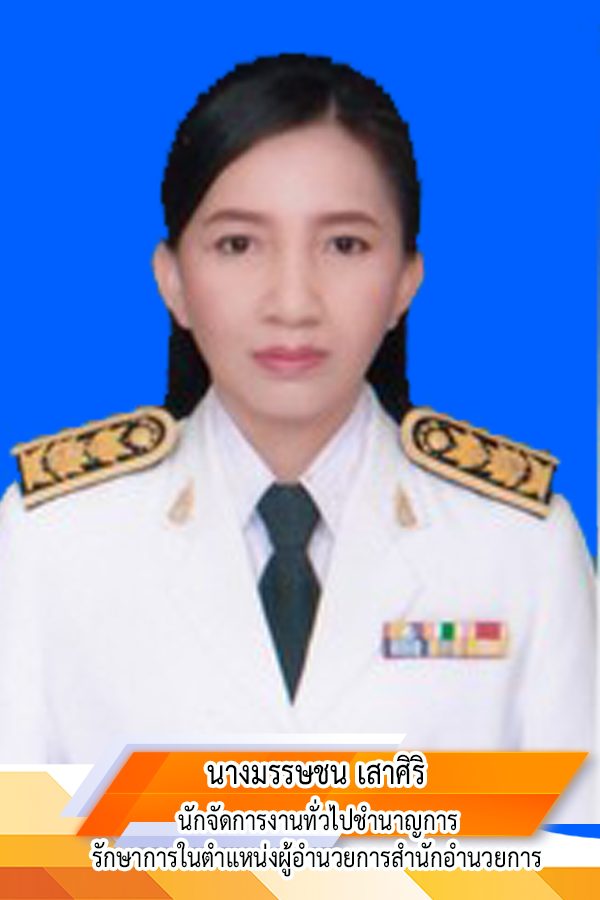 - นางมรรษชน เสาศิริ นักจัดการงานทั่วไปชำนาญการ