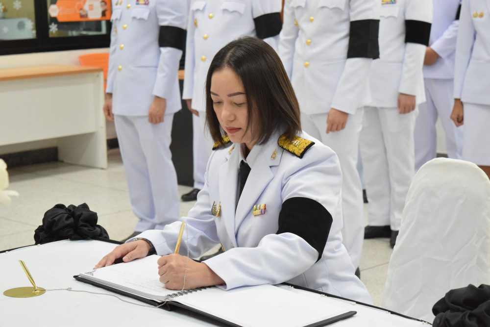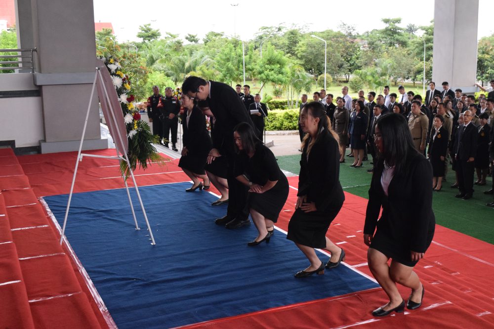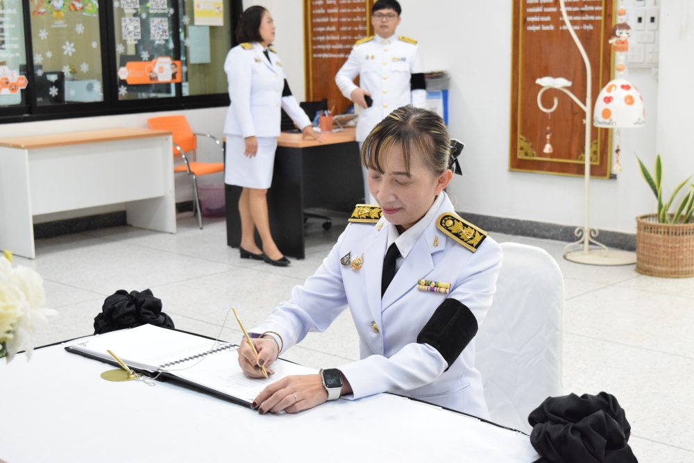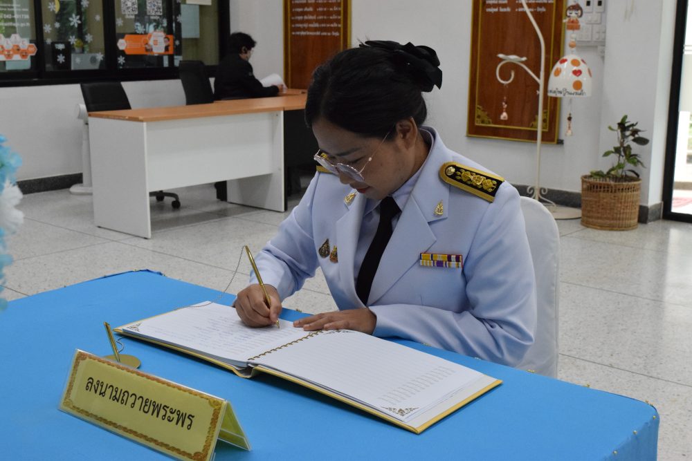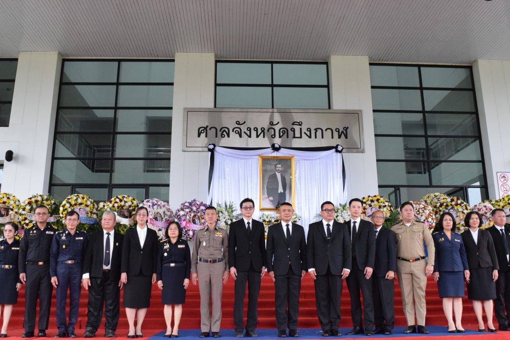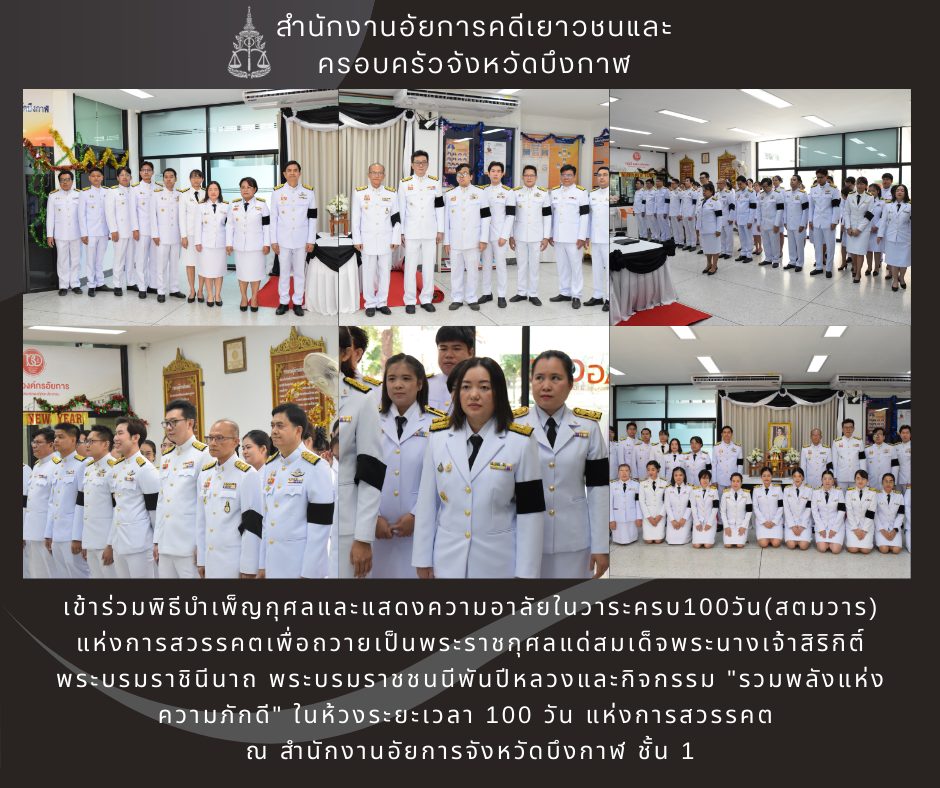 นายณัฐพงศ์ ชิณประทีป อัยการจังหวัดคดีเยาวชนและครอบครัวจังหวัดบึงกาฬ พร้อมเจ้าหน้าที่ร่วมพิธีลงนามถวายความอาลัยสมเด็จพระนาจเจ้าสิริกิติ์ พระบรมราชินีนาถ พระบรมราชชนนีพันปีหลวง ณ สำนักงานอัยการจังหวัดบึงกาฬ ชั้น 1