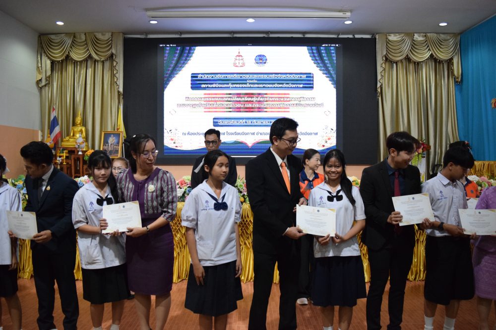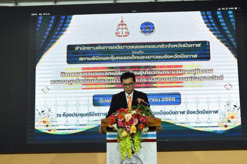 18 กันยายน 2568 เวลา 08.00 ถึง 16.30 น. นายณัฐพงศ์ ชิณประทีป อัยการจังหวัดคดีเยาวชนและครอบครัวจังหวัดบึงกาฬ ร่วมกับสถานพินิจและคุ้มครองเด็กและเยาวชนจังหวัดบึงกาฬ ได้จัดโครงการฝึกอบรมหลักสูตร กระบวนการยุติธรรมสำหรับเด็กและเยาวชนและกระบวนการยุติธรรมเชิงสมานฉันท์ ” สำหรับเด็กและเยาวชนจังหวัดบึงกาฬ ประจำปีงบประมาณ พ.ศ.2568 ณ โรงเรียนบึงกาฬ โดยมีนักเรียนเข้าร่วมฝึกอบรมเป็นจำนวน 80 คนและเจ้าหน้าที่อีก 20 คน เป็นต้น