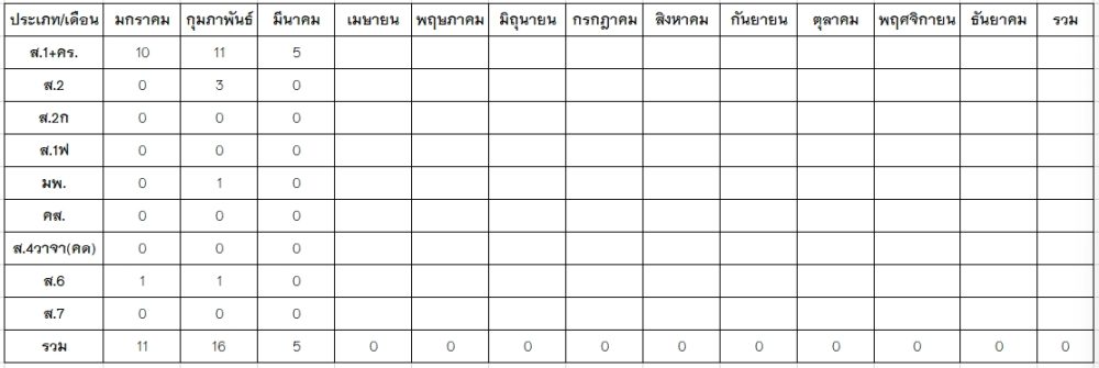 | ส.1 ฟ. | 0 | 0 | 0 | 0 | 0 | 0 | 0 | 0 | 0 | 0 | 0 | 0 | 0 |