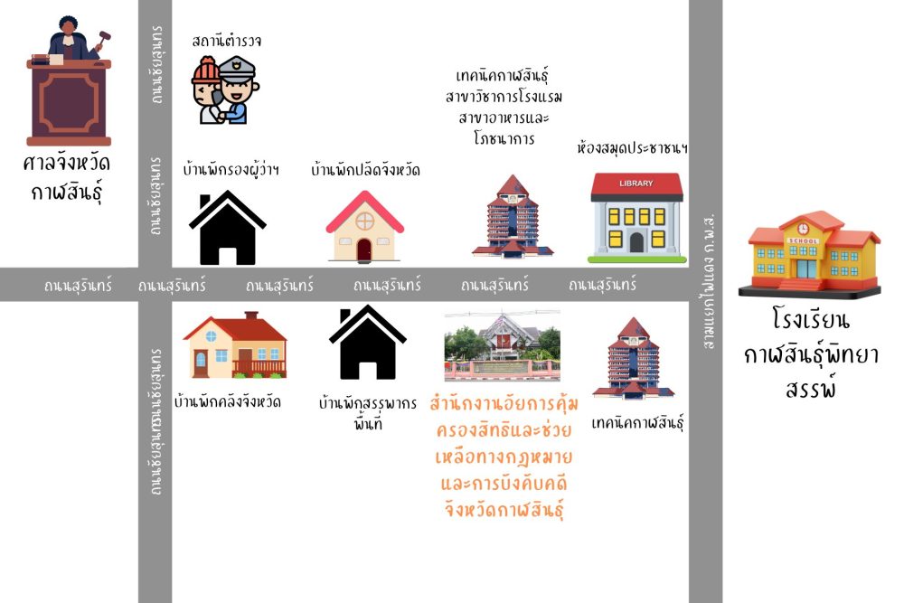 อาคารสำนักงานอัยการจังหวัดกาฬสินธุ์ ชั้น 1 เลขที่ 28/2 ถนนสุรินทร์ ตำบลกาฬสินธุ์ อำเภอเมืองกาฬสินธุ์