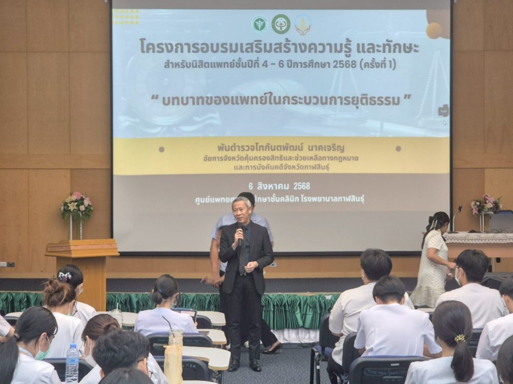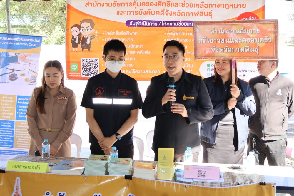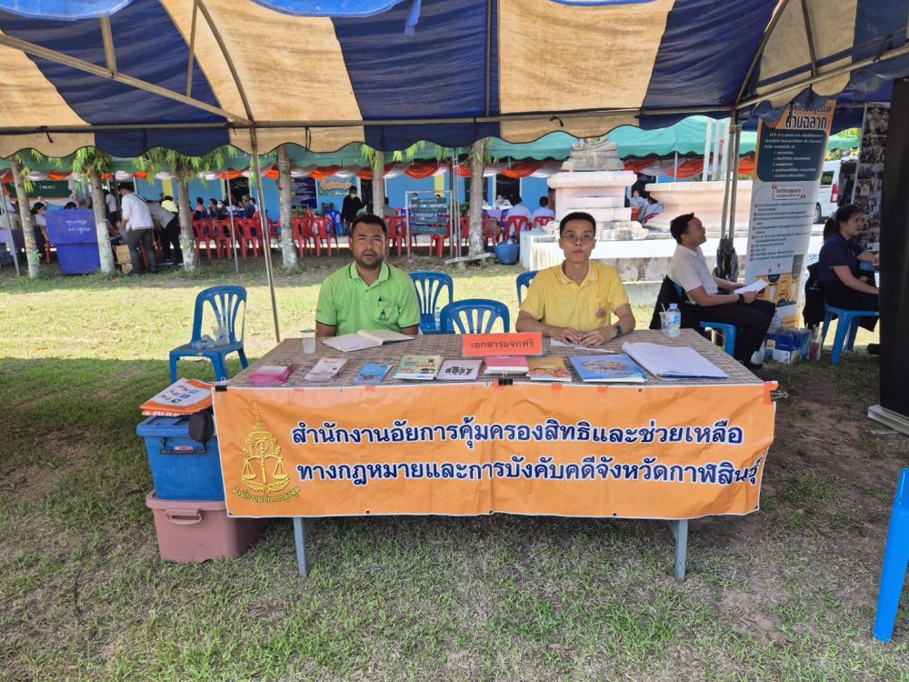 23 เมษายน 2568 สำนักงานอัยการคุ้มครองสิทธิและช่วยเหลือทางกฎหมายและการบังคับคดีจังหวัดกาฬสินธุ์ โดยพันตำรวจโท กันตพัฒน์ นาคเจริญ อัยการจังหวัดคุ้มครองสิทธิและช่วยเหลือทางกฎหมายและการบังคับคดีจังหวัดกาฬสินธุ์ พร้อมบุคลากร ร่วมโครงการหน่วยแพทย์เคลื่อนที่ พอ.สว. จังหวัดกาฬสินธุ์ ณ โรงเรียนบ้านกุดตาใกล้ หมู่ที่ 4 ตำบลสายนาวัง อำเภอนาคู จังหวัดกาฬสินธุ์