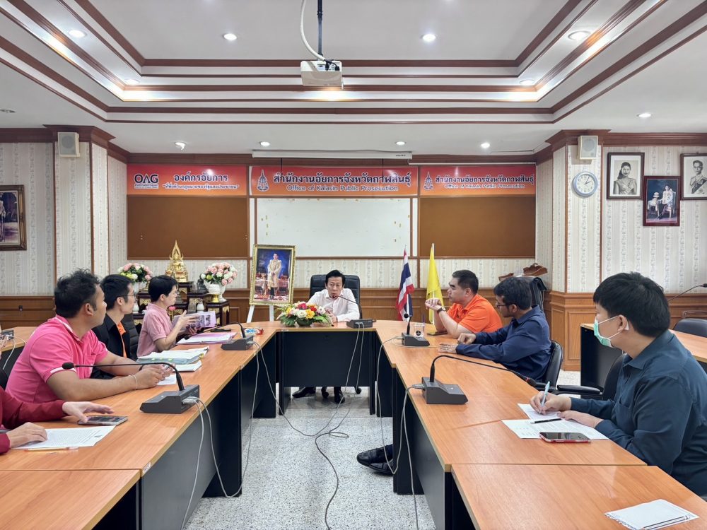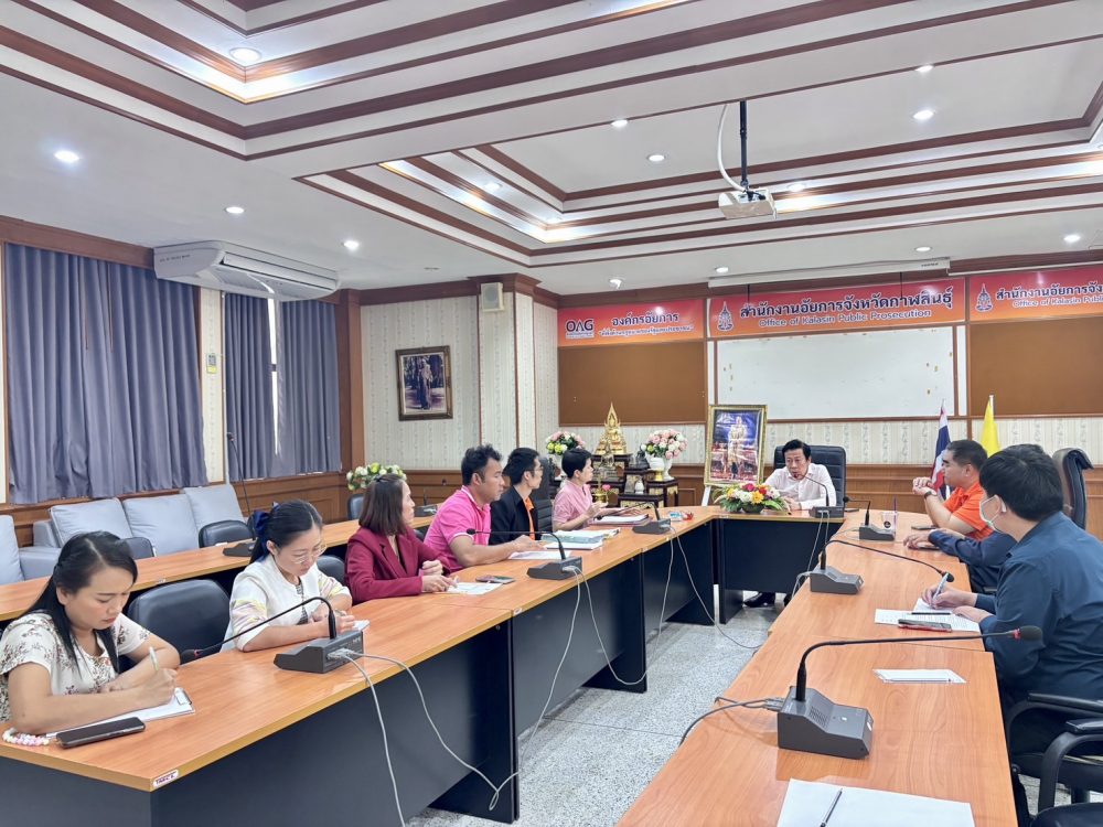 20 พฤษภาคม 2568 สำนักงานอัยการคุ้มครองสิทธิและช่วยเหลือทางกฎหมายและการบังคับคดีจังหวัดกาฬสินธุ์ โดย พันตำรวจโท กันตพัฒน์ นาคเจริญ อัยการจังหวัดคุ้มครองสิทธิและช่วยเหลือทางกฎหมายแะลการบังคับคดีจังหวัดกาฬสินธุ์ พร้อมบุคลกร ร่วมประชุมเพื่อวางแผนในการจัดฝึกอบรม “อาสาสมัครอัยการช่วยได้” รุ่นที่ 2 ณ อำเภอสมเด็จจังหวัดกาฬสินธุ์
