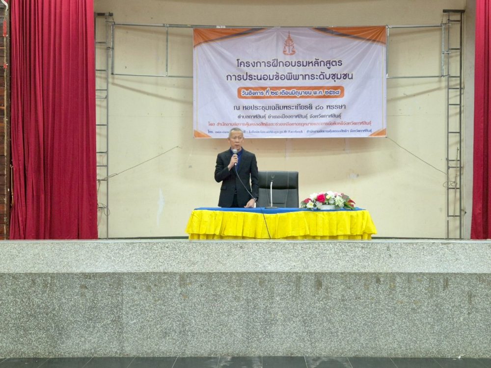 สำนักงานอัยการคุ้มครองสิทธิและช่วยเหลือทางกฎหมายและการบังคับคดีจังหวัดกาฬสินธุ์ โดยพันตำรวจโท กันตพัฒน์ นาคเจริญ อัยการจังหวัดคุ้มครองสิทธิและช่วยเหลือทางกฎหมายและการบังคับคดีจังหวัดกาฬสินธุ์ พร้อมบุคลากร ร่วมโครงการประชุมเชิงปฏิบัติการเสริมสร้างธรรมาภิบาลโครงการแก้ไขปัญหาความยากจน (กข.คจ.) ระดับอำเภอ