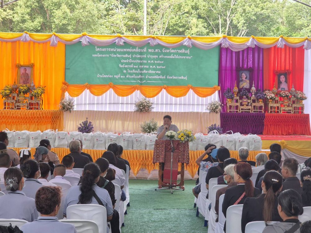 22 พฤษภาคม 2568 สำนักงานอัยการคุ้มครองสิทธิและช่วยเหลือทางกฎหมายและการบังคับคดีจังหวัดกาฬสินธุ์ โดยพันตำรวจโท กันตพัฒน์ นาคเจริญ อัยการจังหวัดคุ้มครองสิทธิและช่วยเหลือทางกฎหมายและการบังคับคดีจังหวัดกาฬสินธุ์ พร้อมบุคลากร ร่วมโครงการหน่วยแพทย์เคลื่อนที่ พอ.สว. และโครงการจังหวัดกาฬสินธุ์ บำบัดทุกข์ บำรุงสุข สร้างรอยยิ้มให้ประชาชน ประจำปี พ.ศ. 2568 ณ โรงเรียนบ้านจุมจังพลังราษฎร์ บ้านจุมจัง หมู่ที่ 1 ตำบลจุมจัง อำเภอกุฉินารายณ์ จังหวัดกาฬสินธุ์