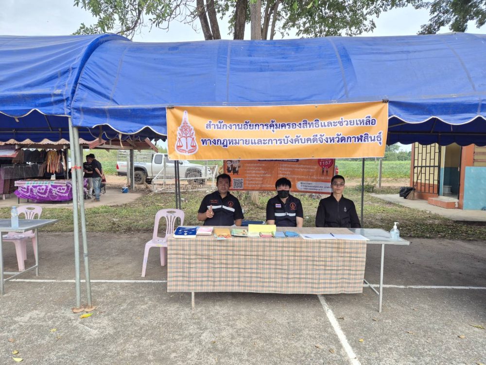 3 เมษายน 2568 เวลา 09.00 น. เป็นต้นไป สำนักงานอัยการคุ้มครองสิทธิและช่วยเหลือทางกฎหมายและการบังคับคดีจังหวัดกาฬสินธุ์ โดยพันตำรวจโท กันตพัฒน์ นาคเจริญ อัยการจังหวัดคุ้มครองสิทธิและช่วยเหลือทางกฎหมายและการบังคับคดีจังหวัดกาฬสินธุ์ นายวรรณกร บานชื่น อัยการจังหวัดประจำสำนักงานอัยการสูงสุด ปฏิบัติราชการในหน้าที่ผู้กลั่นกรองงาน พร้อมบุคลการ เข้าตรวจเยี่ยมศูนย์บริการทางกฎหมาย และให้บริการรับปรึกษากฎหมายแก่ประชาชนทั่วไป ณ สำนักงานเทศบาลตำบลโคกศรี สำนักงานเทศบาลตำบลยางตลาด องค์การบริหารส่วนตำบลยางตลาด และสำนักงานเทศบาลตำบลบัวบาน อำเภอยางตลาด จังหวัดกาฬสินธุ์