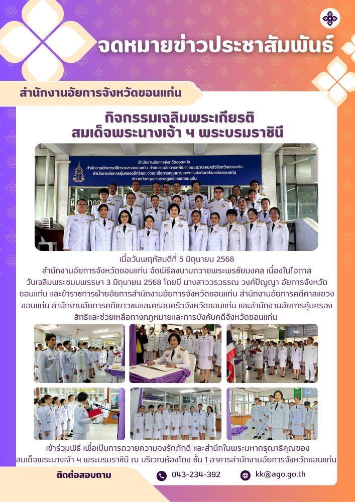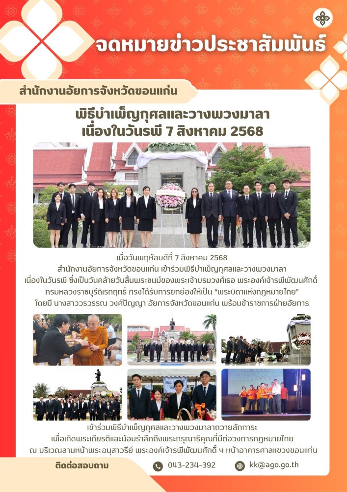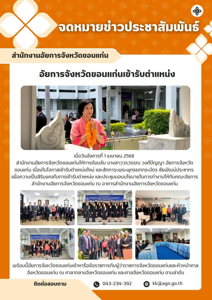 บทบาทและหน้าที่สำนักงานอัยการจังหวัดขอนแก่น