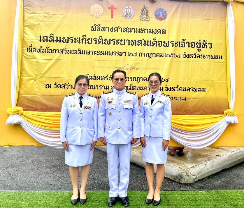 นายเชิดศักดิ์ พรหมอารักษ์ อัยการจังหวัดคดีเยาวชนและครอบครัวจังหวัดนครพนม และคณะ ร่วมพิธี งานเฉลิมพระเกียรติพระบาทสมเด็จพระเจ้าอยู่หัว เนื่องในโอกาส พระราชพิธีมหามงคลเฉลิมพระชนมพรรษา 28 กรกฎาคม 2568