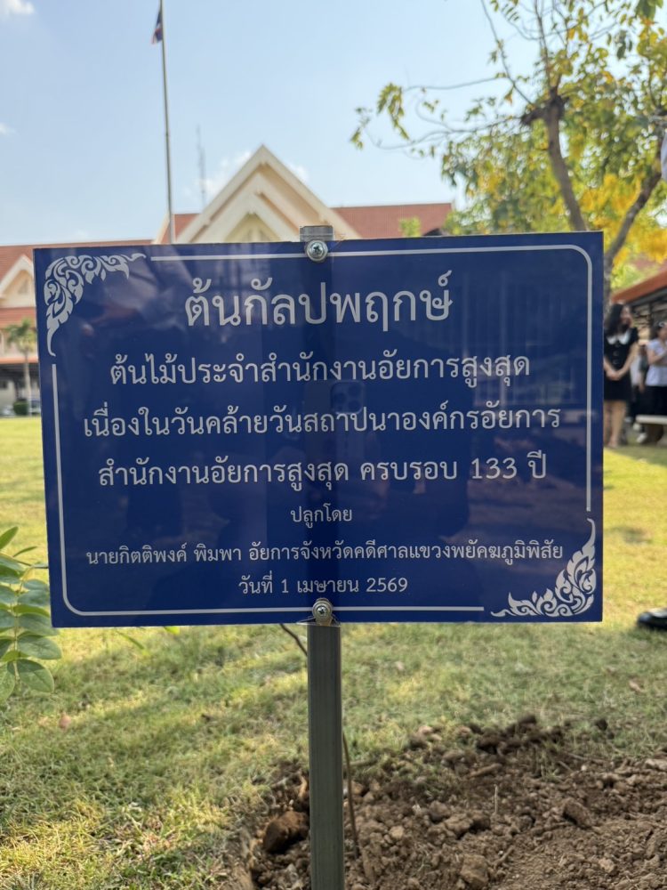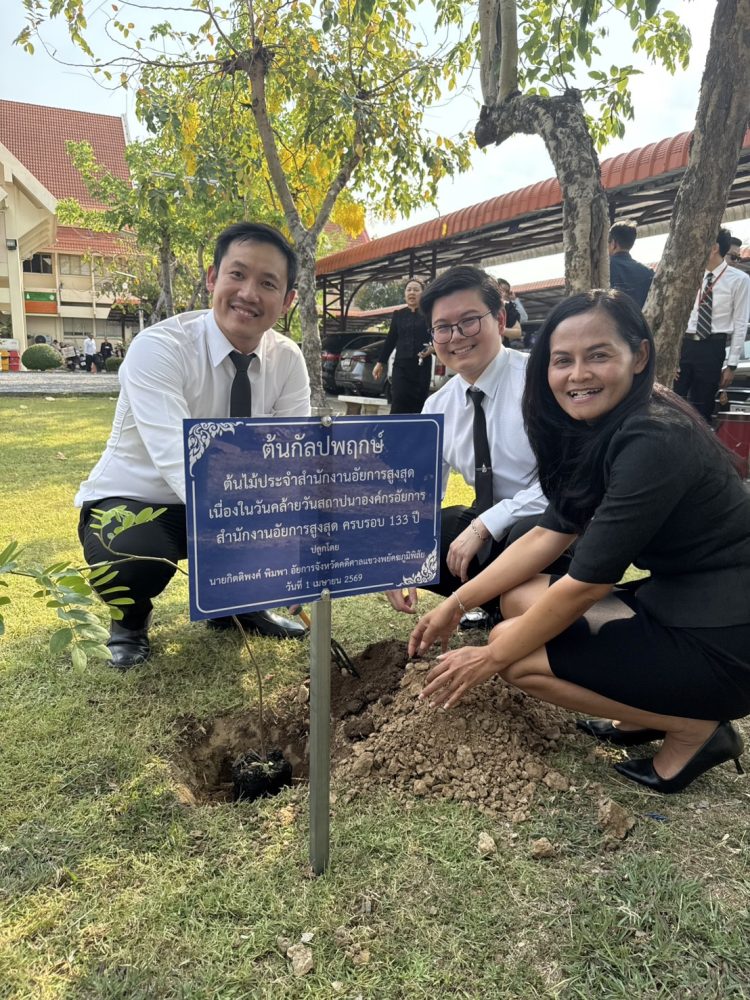 วันที่ ๑ เมษายน ๒๕๖๙ นายนรเทพ ครบปรัชญา อัยการจังหวัดประจำสำนักงานอัยการสูงสุด พร้อมด้วยคณะข้าราชการอัยการและข้าราชการธุรการ สำนักงานอัยการคดีศาลแขวงพยัคฆภูมิพิสัย ร่วมจัดกิจกรรมปลูกต้นไม้ประจำสำนักงานอัยการสูงสุด (ต้นกัลปฟฤกษ์) เนื่องในวันคล้ายวันสถาปณาองค์กรอัยการครบรอบ ๑๓๓ ปี