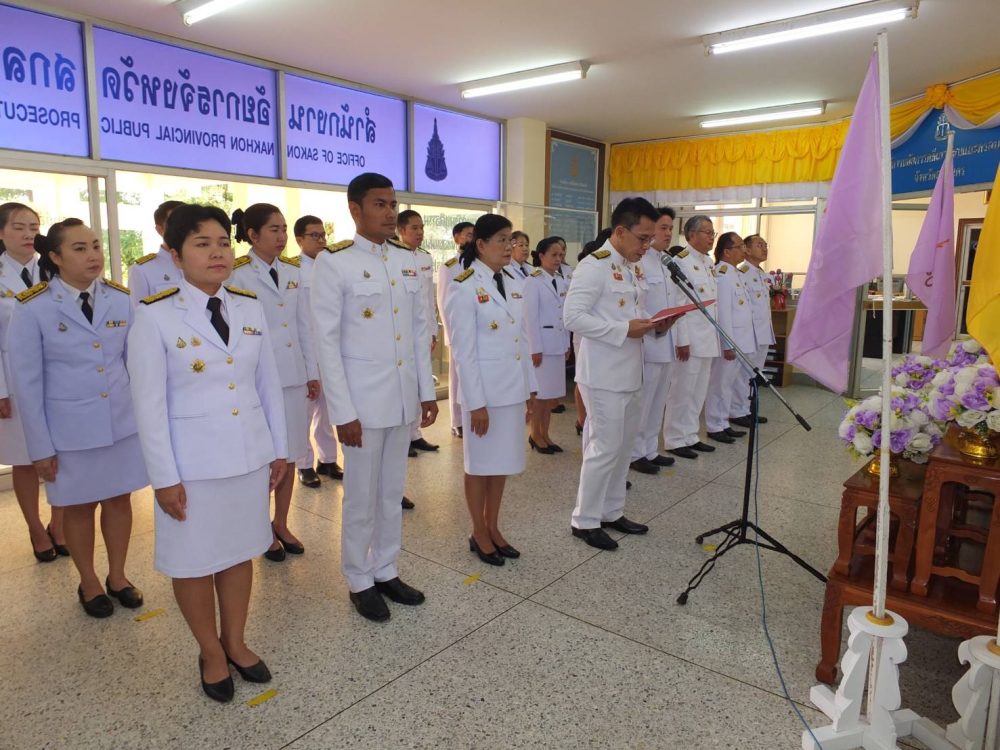 วันที่ 27 กันยายน 2567 พันตำรวจโท สมนึก เขมทองคำ อัยการจังหวัดสกลนคร พร้อมข้าราชการฝ่ายอัยการและบุคลากรสำนักงานอัยการจังหวัดสกลนคร ร่วมกิจกรรมเคารพธงชาติ และร้องเพลงชาติไทย เนื่องในวันพระราชทานธงชาติไทย 28 กันยายน เพื่อเป็นการสร้างความภาคภูมิใจของคนในชาติและเป็นการน้อมรำลึกในพระมหากรุณาธิคุณพระบาทสมเด็จพระมงกุฏเกล้าเจ้าอยู่หัว ที่ได้พระราชทานธงไตรรงค์เป็นธงชาติไทย ณ สำนักงานอัยการจังหวัดสกลนคร ถนนสุขสวัสดิ์ ตำบลธาตุเชิงชุม อำเภอเมืองสกลนคร จังหวัดสกลนคร