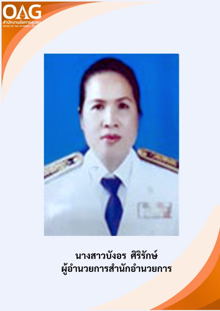 – นางสาวบังอร ศิริรักษ์ ผู้อำนวยการสำนักอำนวยการ