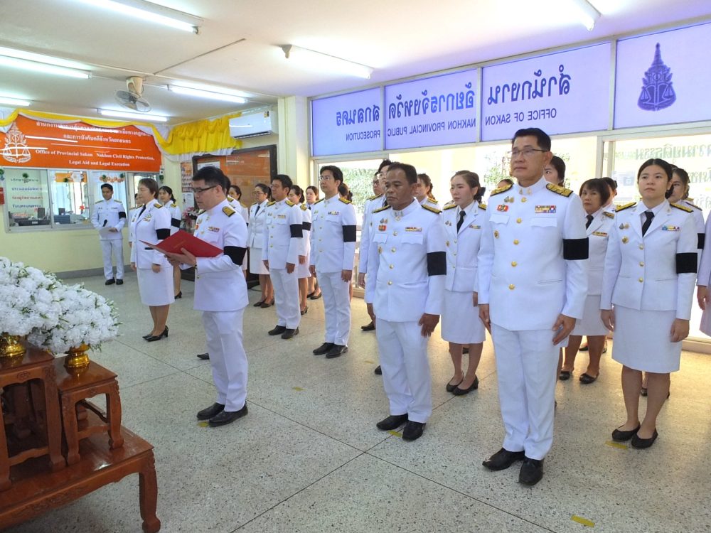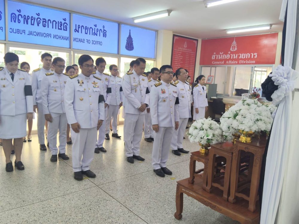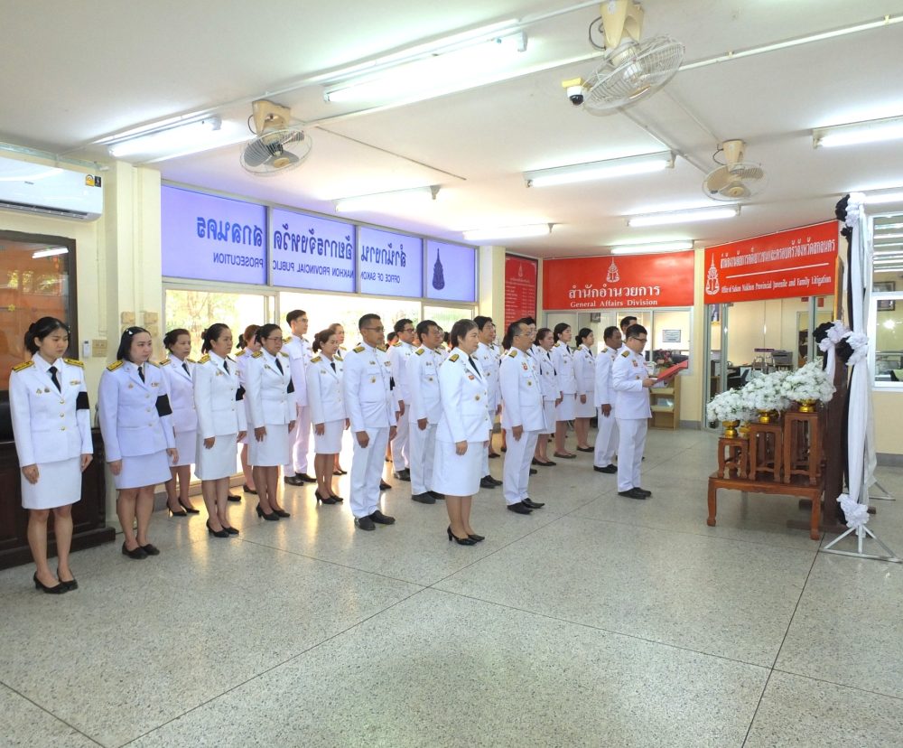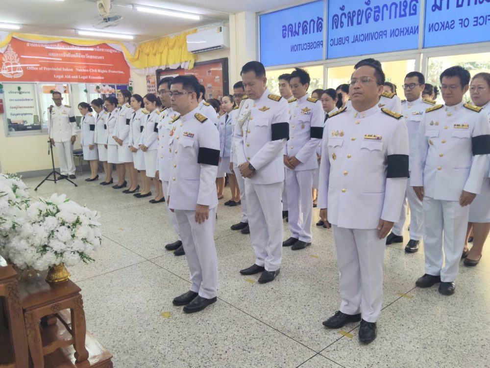 โดยมีคณะผู้บริหาร ข้าราชการฝ่ายอัยการ และบุคลากรสำนักงานอัยการจังหวัดเข้าร่วมในพิธี ณ บริเวณโถงกลาง สำนักงานอัยการจังหวัดสกลนคร เพื่อแสดงความอาลัยและน้อมสำนึกในพระมหากรุณาธิคุณอย่างหาที่สุดมิได้