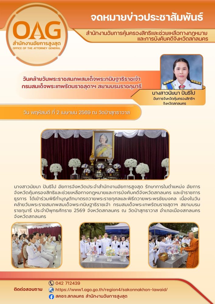 “ข้าราชการฝ่ายอัยการและเจ้าหน้าที่สำนักงานอัยการคุ้มครองสิทธิและช่วยเหลือทางกฎหมายและการบังคับคดีจังหวัดสกลนคร