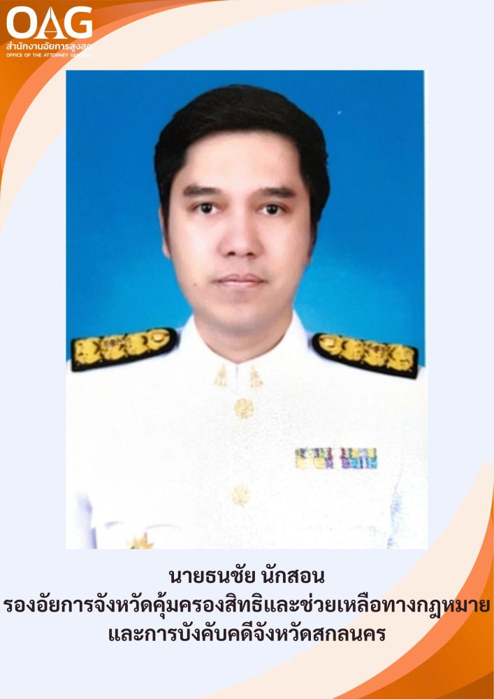 ติดต่อธุรการ (สคช.) โทร.042-721990, โทรสาร 042-721990 E-mail : sawang-lawaid@ago.go.th