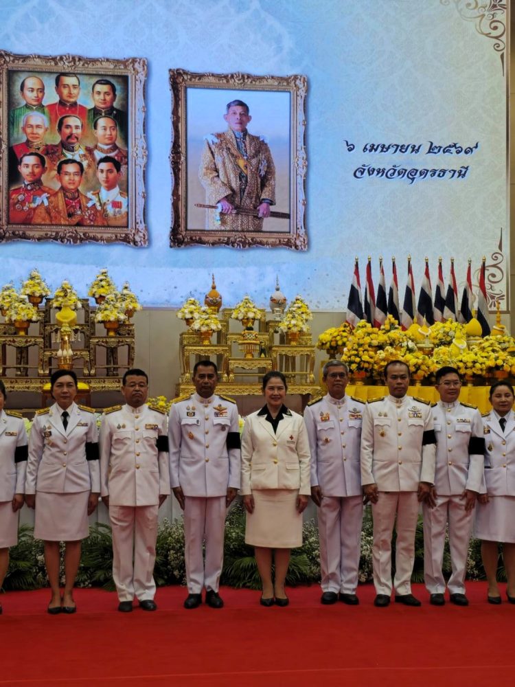 วันจันทร์ที่ 6 เมษายน 2569 เวลา 07.30 นาฬิกา นางพธูทิพย์ อักขระ อัยการจังหวัดคดีศาลแขวงอุดรธานี มอบหมายให้ นายจักริน เพิ่มสุข อัยการจังหวัดประจำสำนักงานอัยการสูงสุด พร้อมด้วยข้าราชการฝ่ายอัยการ ร่วมพิธีถวายราชสักการะเนื่องในวันพระบาทสมเด็จพระพุทธยอดฟ้าจุฬาโลกมหาราช และวันที่ระลึกมหาจักรีบรมราชวงศ์ ประจำปีพุทธศักราช 2569 ณ หอประชุมทองใหญ่ ศาลากลางจังหวัดอุดรธานี