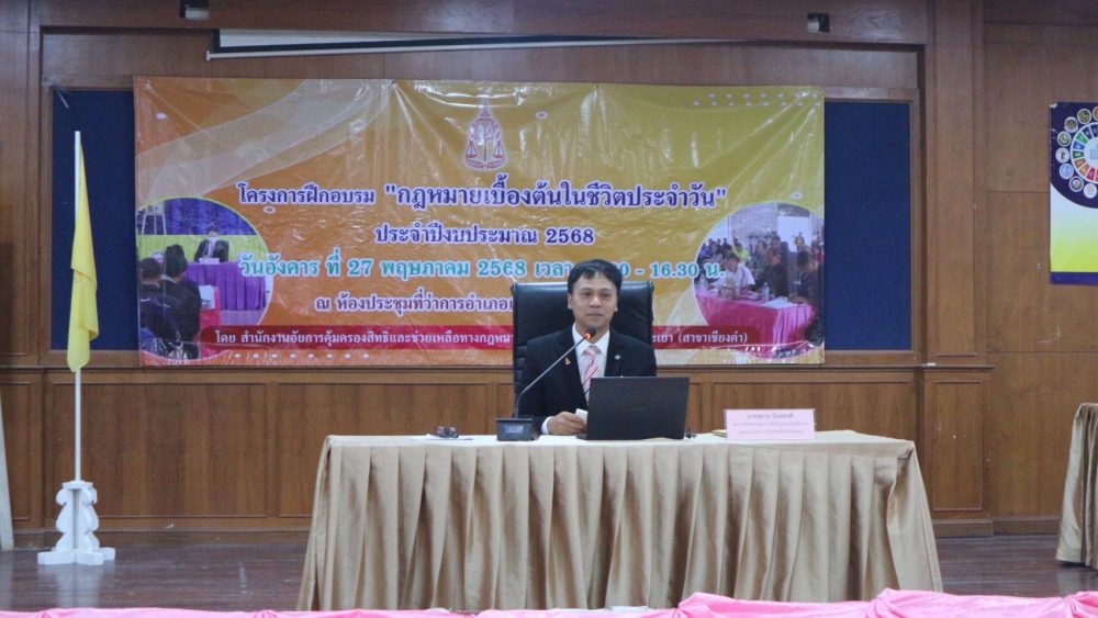 สำนักงานอัยการคุ้มครองสิทธิและช่วยเหลือทางกฎหมายและการบังคับคดีจังหวัดพะเยา (สาขาเชียงคำ) โดย นางอัญชลี ลีอัจฉริยกุล รองอัยการจังหวัด ได้รับเกียรติจากสำนักงานพัฒนาชุมชนอำเภอเชียงคำ ให้เป็นวิทยากรในการถ่ายทอดความรู้ในโครงการเสริมสร้างธรรมภิบาลโครงการแก้ไขปัญหาความยากจน (กข.คจ.) ในหัวข้อ “ข้อกฎหมายเกี่ยวกับการบริหารจัดการกองทุนแก้ไขปัญหาความยากจน” ในวันที่ 30 มิถุนายน 2568 เวลา 10.30 – 12.00 นาฬิกา ณ ห้องประชุม 111 ปี ที่ว่าการอำเภอเชียงคำ ตำบลหย่วน อำเภอเชียงคำ จังหวัดพะเยา