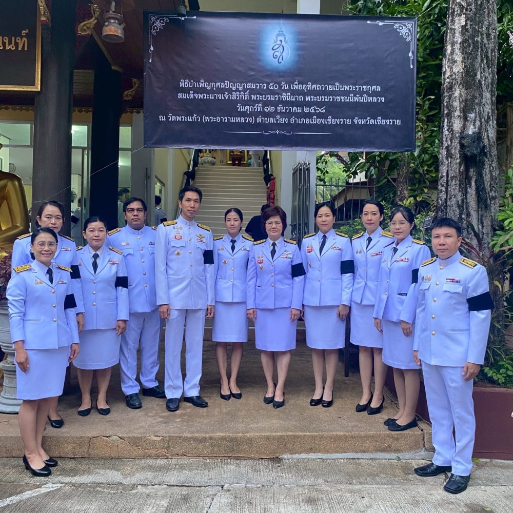 วันที่ 12 ธันวาคม พ.ศ. 2568 ร้อยตำรวจโทวสันต์ จันทาพูน อัยการจังหวัดประจำสำนักงานอัยการสูงสุด ผู้แทนอัยการจังหวัดคดีเยาวชนและครอบครัวจังหวัดเชียงราย นำข้าราชการฝ่ายอัยการและบุคลากร เข้าร่วมพิธีบำเพ็ญกุศลถวายพระราชกุศลครบ 50 วัน “ปัญญาสมวาร” เนื่องในวันสวรรคต สมเด็จพระบรมราชชนนีพันปีหลวง ณ วัดพระแก้ว ตำบลรอบเวียง อำเภอเมืองเชียงราย จังหวัดเชียงราย