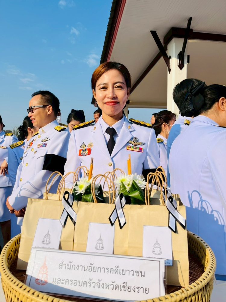 วันที่ 31 มกราคม พ.ศ. 2569 นางสาวจิรภัทร ปานเกษม อัยการจังหวัดคดีเยาวชนและครอบครัวจังหวัดเชียงราย นำข้าราชการฝ่ายอัยการและบุคลากร เข้าร่วมพิธีบำเพ็ญกุศลและแสดงความอาลัย ในวาระครบ 7 วัน (สัตตมวาร) 15 วัน (ปัณรสมวาร) 50 วัน (ปัญญาสมวาร) 100 วัน (สตมวาร) แห่งการสวรรคต และการจัดกิจกรรมรวมพลังแห่งความภักดีจงรักภักดี เพื่อถวายเป็นพระราชกุศล แด่สมเด็จพระนางเจ้าสิริกิติ์ พระบรมราชินีนาถ พระบรมราชชนนีพันปีหลวง ณ หอประชุมใหญ่ ศาลากลางจังหวัดเชียงราย ตำบลในเมือง อำเภอเมืองเชียงราย จังหวัดเชียงราย