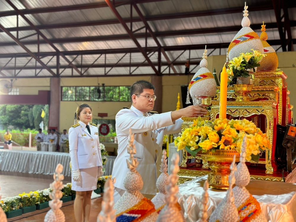 ได้ร่วมพิธีถวายเครื่องราชสักการะและวางพานพุ่ม และพิธีจุดเทียน