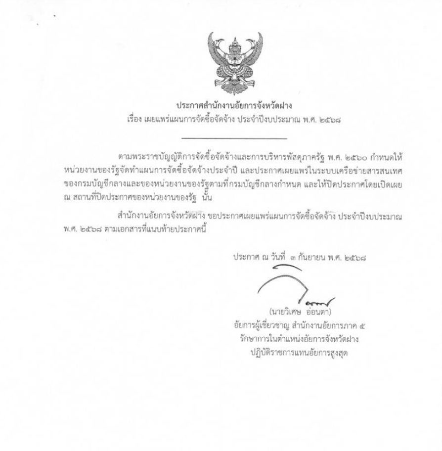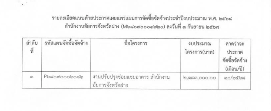 ประกาศแผนการจัดซื้อจัดจ้างประจำปีงบประมาณ พ.ศ. 2568