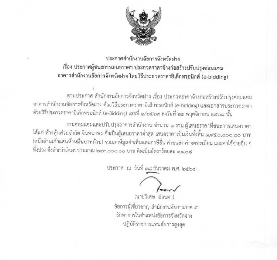 ประกาศประกวดราคาจ้างก่อสร้างปรับปรุงซ่อมแซมอาคารสำนักงานฯ