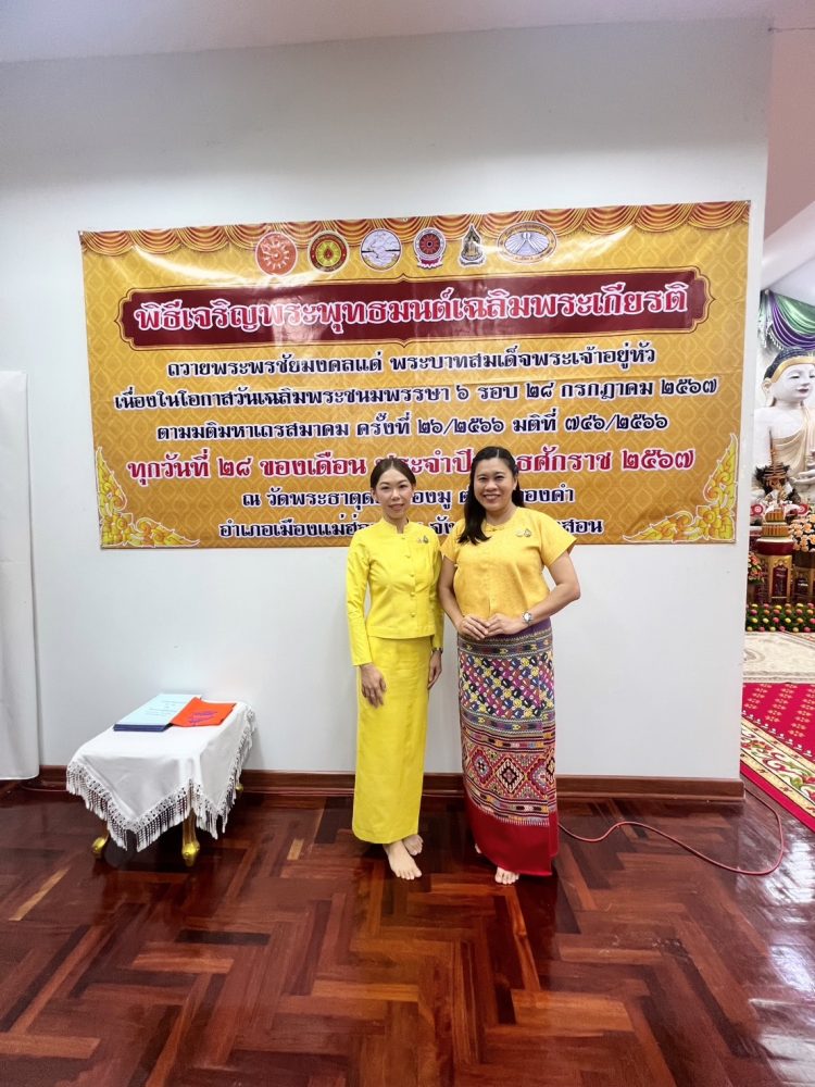 ร่วมงานพิธีเจริญพระพุทธมนต์และลงนามถวายพระพรชัยมงคลพร้อมทำบุญตักบาตรถวายพระราชกุศลเฉลิมพระเกียรติ สมเด็จพระเจ้าลูกเธอ เจ้าฟ้าสิริวัณณวรี นารีรัตนราชกัญญา เนื่องในโอกาสวันคล้ายวันประสูติ 8 มกราคม 2569 เมื่อวันที่ 8 มกราคม 2569 เวลา 07.30 น. ณ อาคารผู้สูงอายุ วัดพระธาตุดอยกองมู อำเภอเมือง จังหวัดแม่ฮ่องสอน