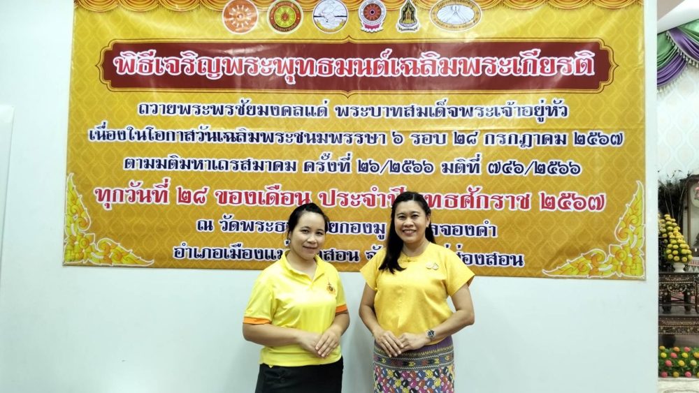 วันพฤหัสบดีที่ 19 กรกฎาคม 2567 เวลา 17.00 น. นางสาวกันยารัตน์ รัตนสิทธิ์ อัยการประจำสำนักงานอัยการสูงสุด พร้อมด้วยเจ้าหน้าที่สำนักงานอัยการจังหวัดแม่ฮ่องสอน ร่วมพิธีเจริญพระพุทธมนต์เฉลิมพระเกียรติ ถวายพระพรชัยมงคลแด่พระบาทสมเด็จพระเจ้าอยู่หัว เนื่องในโอกาสวันเฉลิมพระชนมพรรษา 6 รอบ 28 กรกฎาคม 2567 โดยมี นายชูชีพ พงษ์ไชย ผู้ว่าราชการจังหวัดแม่ฮ่องสอน เป็นประธานฯ ณ วัดพระธาตุดอยกองมู ตำบลจองคำ อำเภอเมืองแม่ฮ่องสอน จังหวัดแม่ฮ่องสอน