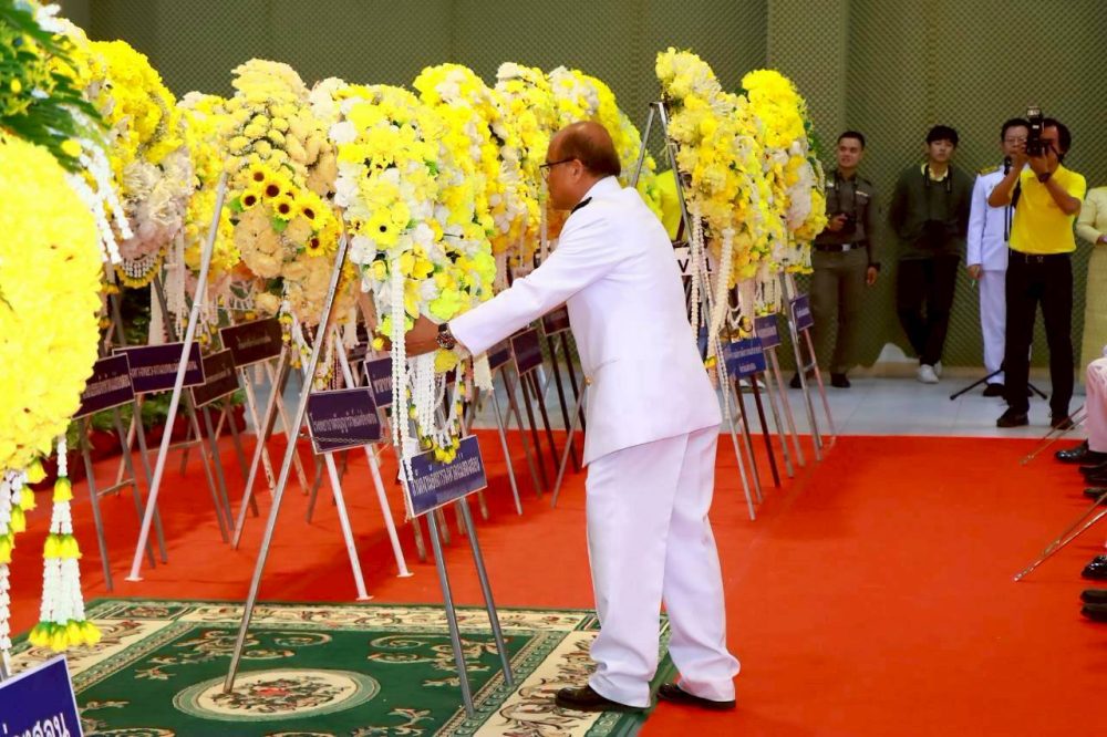 พิธีวางพานพุ่มดอกไม้สดถวายราชสักการะแด่พระบาทสมเด็จพระบรมชนกาธิเบศร มหาภูมิพลอดุลยเดชมหาราช บรมนาถบพิตร เนื่องในวัน “วันพระบิดาแห่งฝนหลวง” ประจำปี 2567