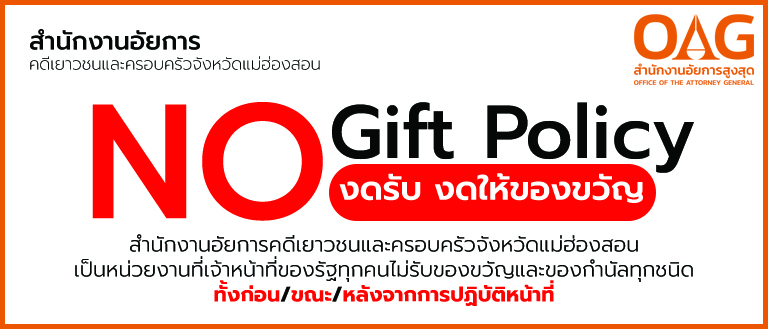 วันที่ ๑๕ มกราคม ๒๕๖๘ สำนักงานอัยการคดีเยาชนและครอบครัวจังหวัดแม่ฮ่องสอนได้จัดการประชุม เรื่องนโยบายไม่รับของขวัญและของกํานัลทุกชนิดจากการปฏิบัติหน้าที่ (No Gift Policy) ของสํานักงานอัยการสูงสุด ประจําปีงบประมาณ พ.ศ. ๒๕๖๙ โดยสํานักงานอัยการสูงสุดเป็นองค์กรที่บังคับใช้กฎหมายด้วยความโปร่งใส เป็นธรรม เพื่ออํานวยความยุติธรรม คุ้มครองสิทธิและเสรีภาพของประชาชน และพิทักษ์รักษาผลประโยชน์ของรัฐ อัยการสูงสุดจึงประกาศเจตนารมณ์ว่า “ผู้บริหารสํานักงานอัยการสูงสุด ข้าราชการฝ่ายอัยการ และบุคลากรของสํานักงานอัยการสูงสุดทุกคน ไม่รับของขวัญและของกํานัลทุกชนิดทั้งในขณะ ก่อน และหลัง จากการปฏิบัติหน้าที่ (No Gift Policy)”