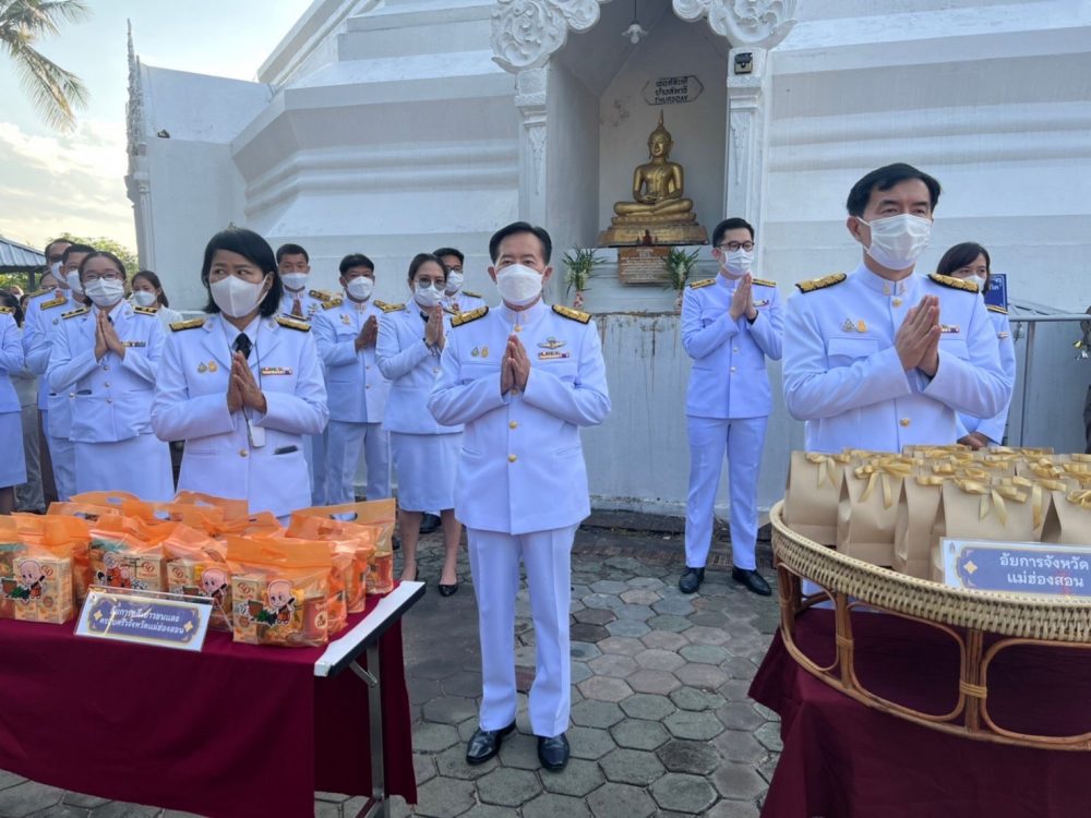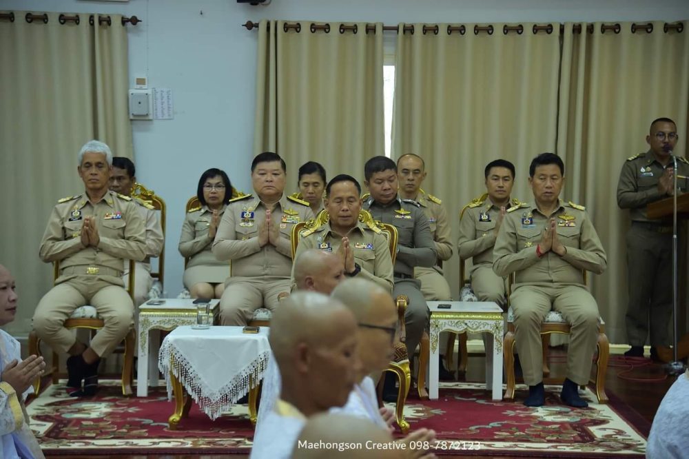 นายกษิดิ์เดช เรืองสว่าง อัยการจังหวัดคุ้มครองสิทธิและช่วยเหลือทางกฎหมายและการบังคับคดีจังหวัดแม่ฮ่องสอน พร้อมด้วยเจ้าหน้าที่สำนักงานอัยการคุ้มครองสิทธิและช่วยเหลือทางกฎหมายและการบังคับคดีจังหวัดแม่ฮ่องสอน เข้าร่วมพิธีเจริญพระพุทธมนต์และพิธีทำบุญตักบาตรถวาย