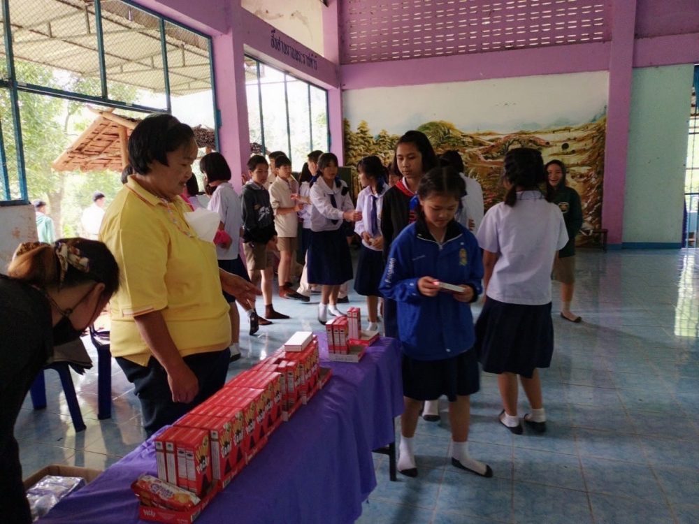 และเลี้ยงอาหารกลางวัน กับเด็กนักเรียน