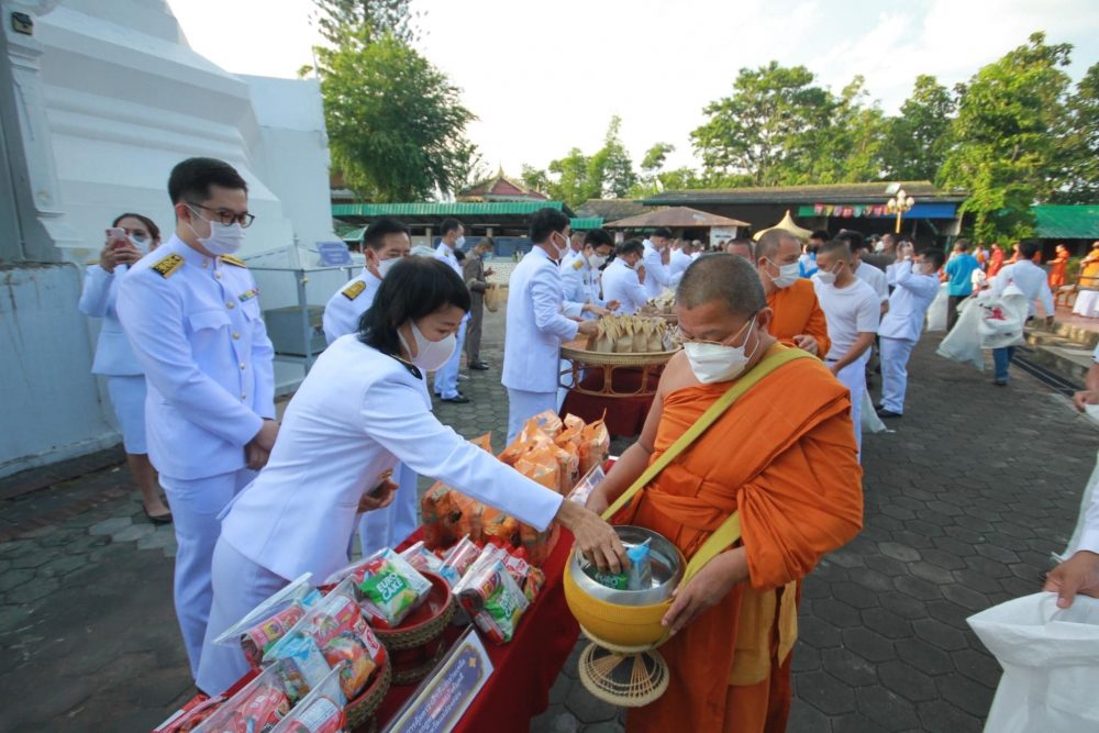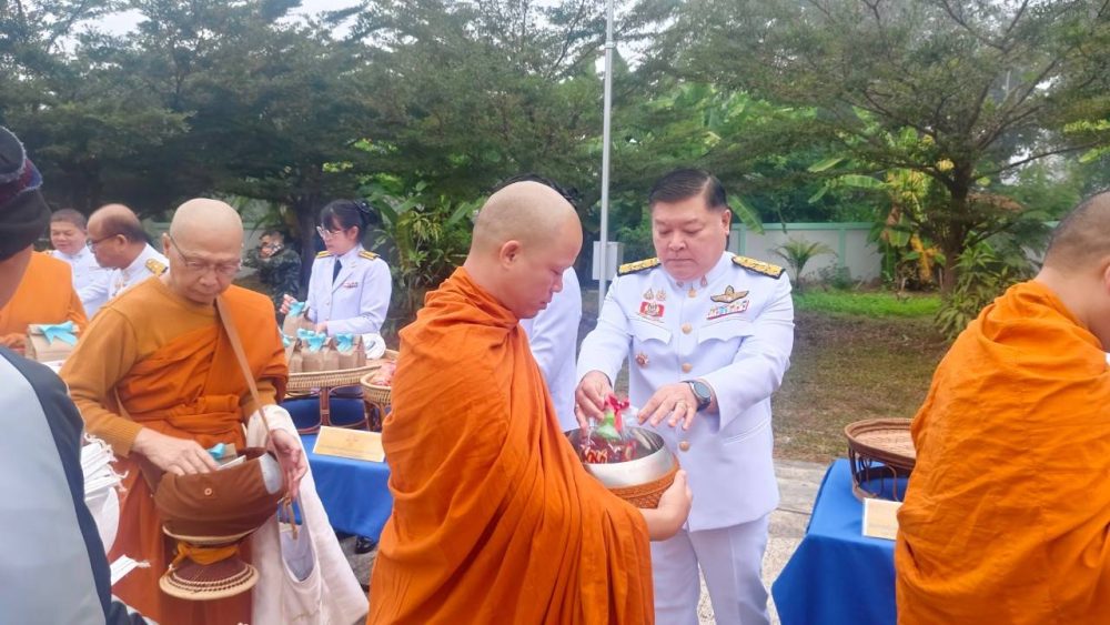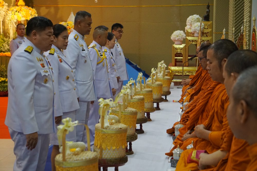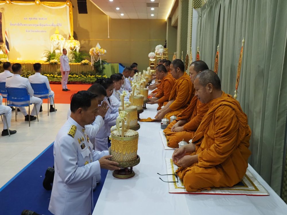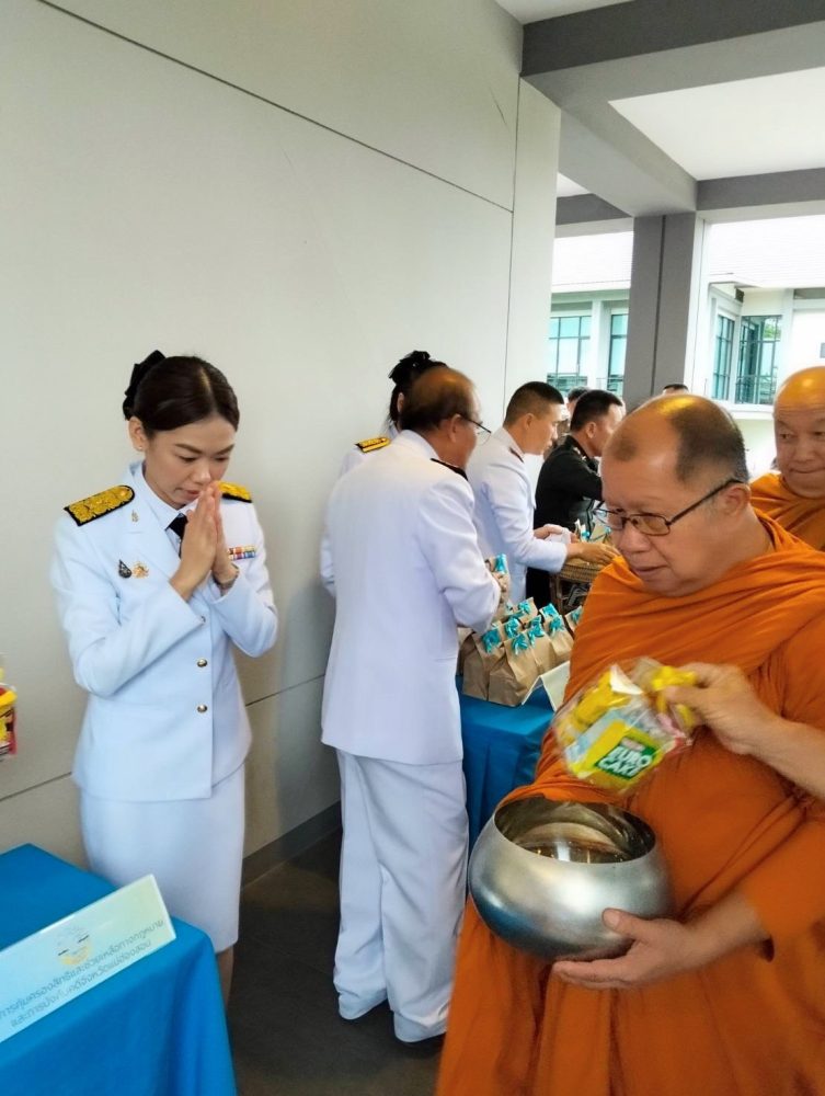 ร่วมพิธีทำบุญตักบาตรถวายเป็นพระราชกุศล และพิธีเจริญพระพุทธมนต์เฉลิมพระเกียรติฯ