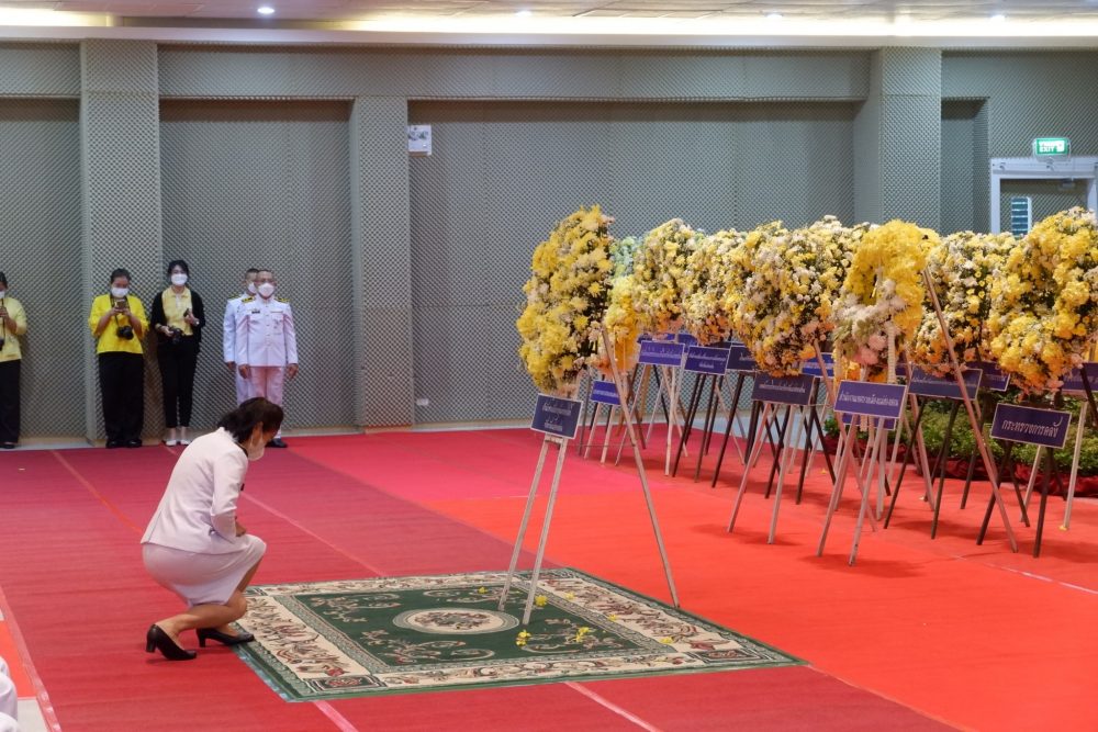 พิธีถวายราชสักการะวางพานพุ่มดอกไม้สด น้อมรำลึกในพระมหากรุณาธิคุณ พระบาทสมเด็จพระบรมชนนกาธิเบศร มหาภูมิพลอดุลยเดชมหาราช บรมนาถบพิตร เนื่องในวันพระบิดาแห่งฝนหลวง ประจำปี ๒๕๖๕