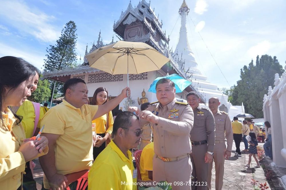 และลงนามถวายพระพร ณ วัดพระธาตุดอยกองมู ตำบลจองคำ อำเภอเมืองแม่ฮ่องสอน