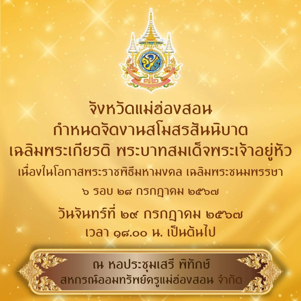 จังหวัดแม่ฮ่องสอน เพื่อส่งเสริมให้พสกนิกรทุกหมู่เหล่าร่วมกันทำความดีถวายพระราชกุศล แสดงออกถึงความจงรักภักดีและน้อมรำลึกในพระมหากรุณาธิคุณของ