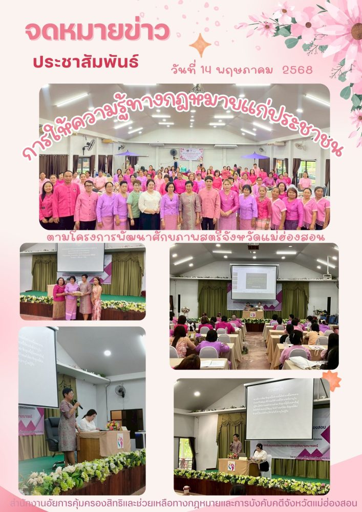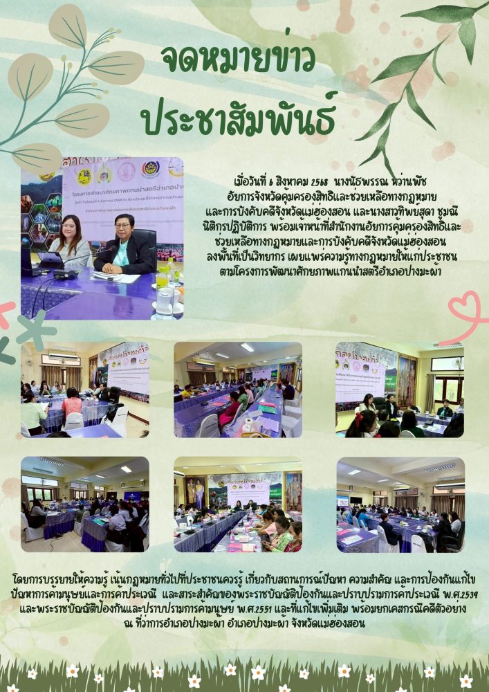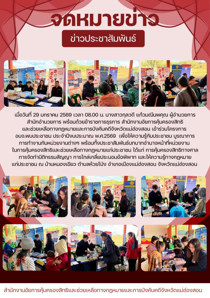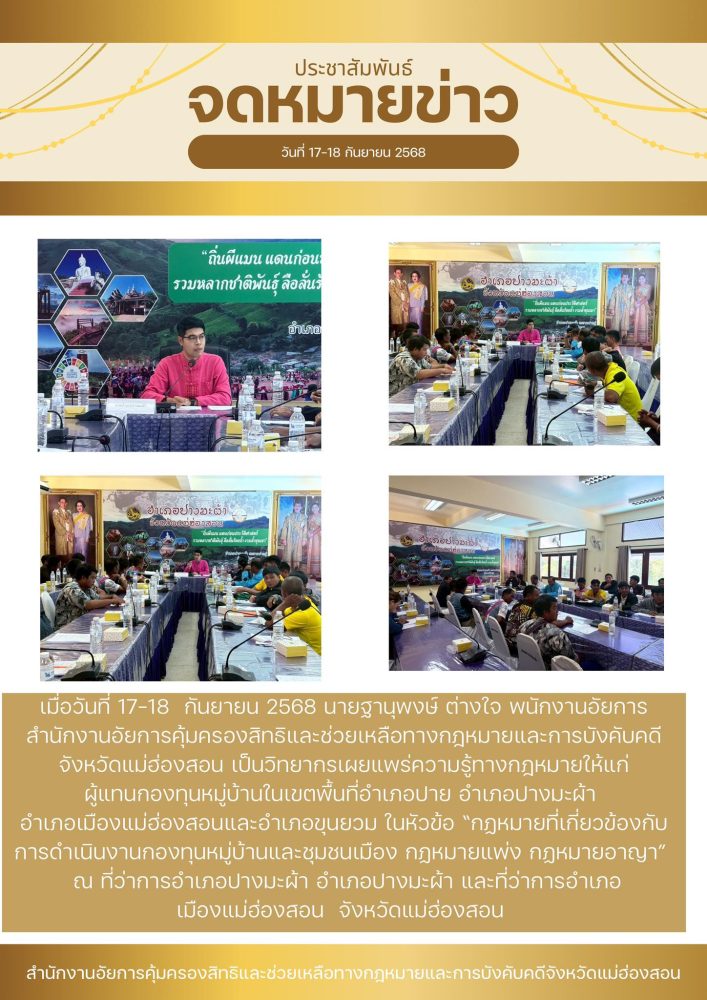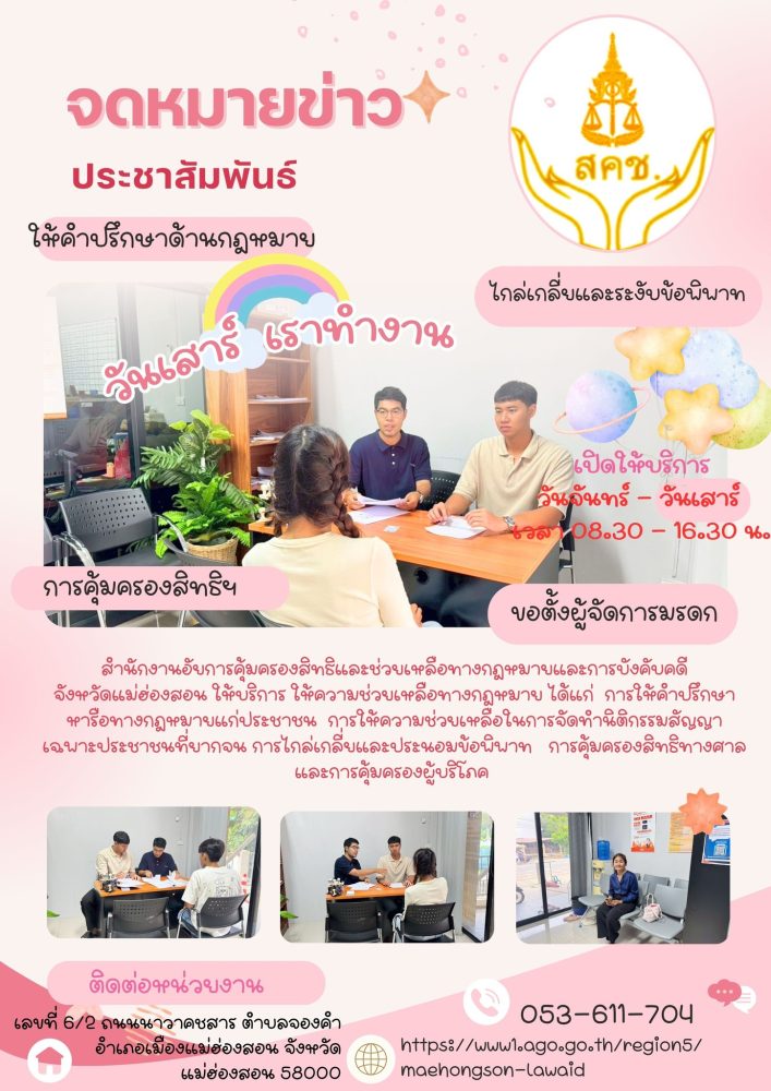 คุ้มครองสิทธิและช่วยเหลือทางกฎหมายและการบังคับคดีจังหวัดแม่ฮ่องสอน