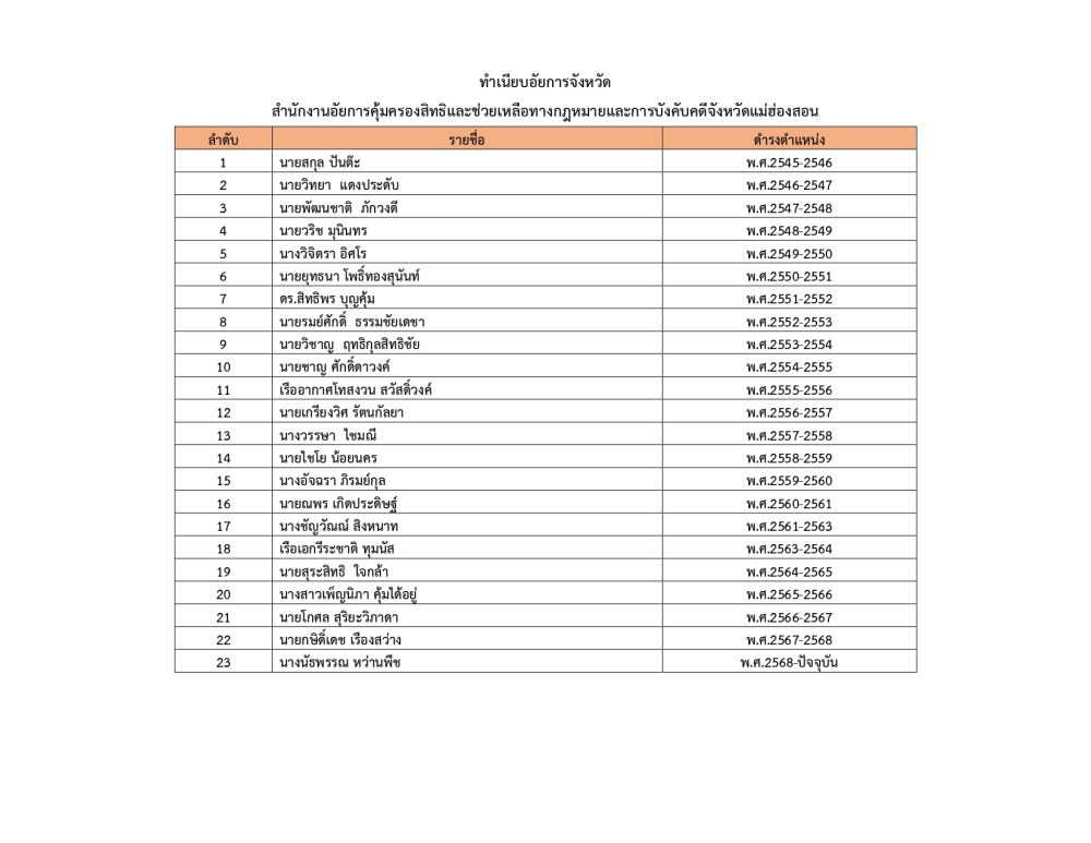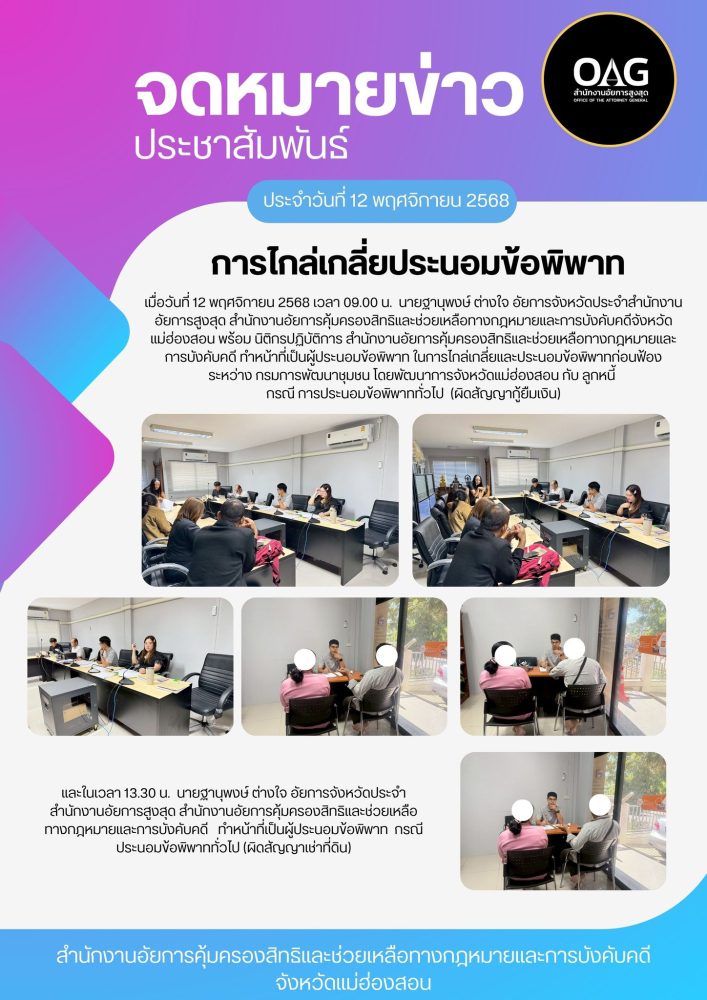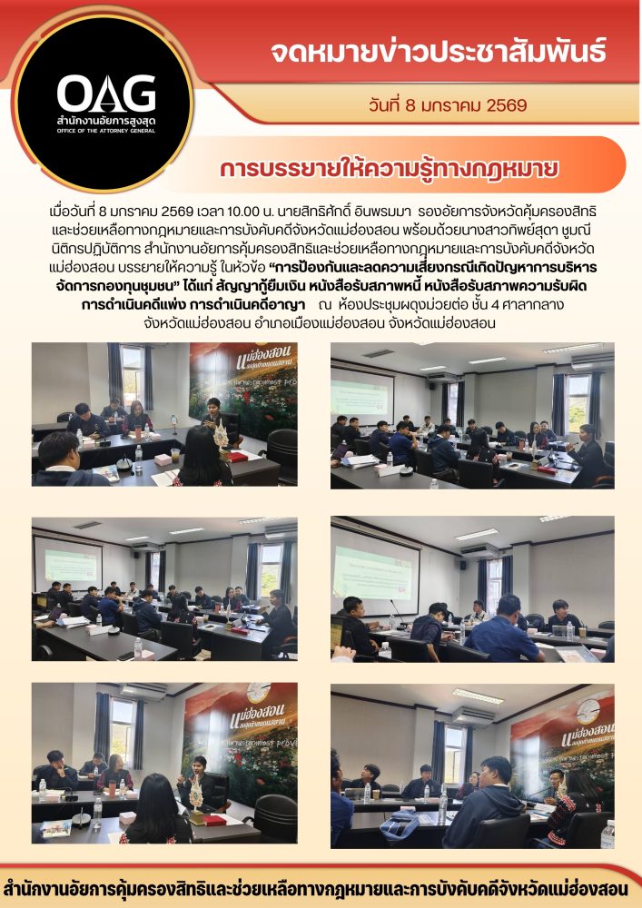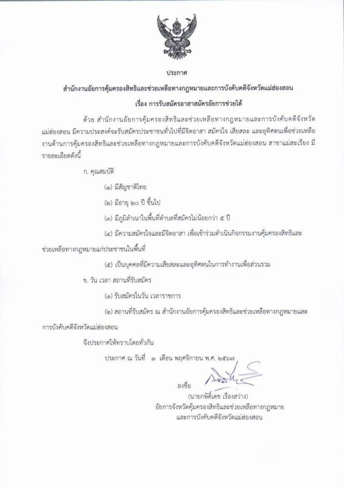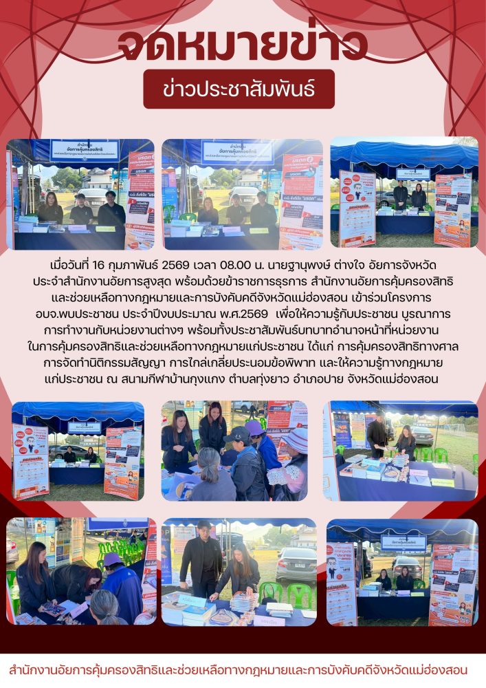 คุ้มครองสิทธิและช่วยเหลือทางกฎหมายและการบังคับคดีจังหวัดแม่ฮ่องสอน