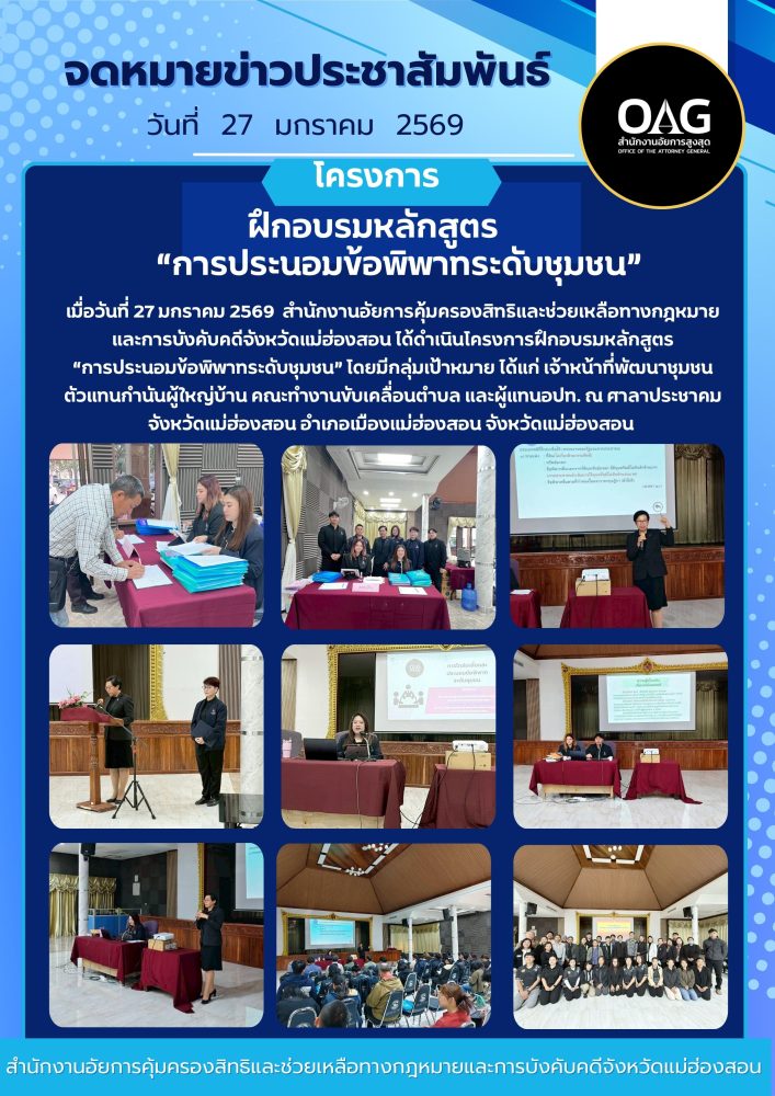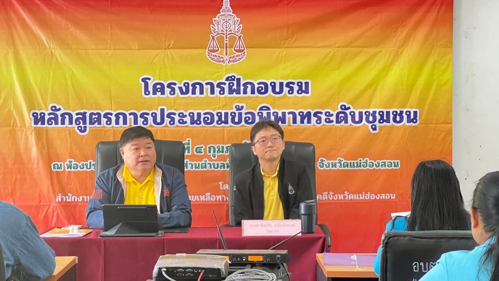 ช่วยเหลือทางกฎหมายและการบังคับคดีจังหวัดแม่ฮ่องสอน จัดโครงการฝึกอบรมหลักสูตรการประนอมข้อพิพาทระดับชุมชน