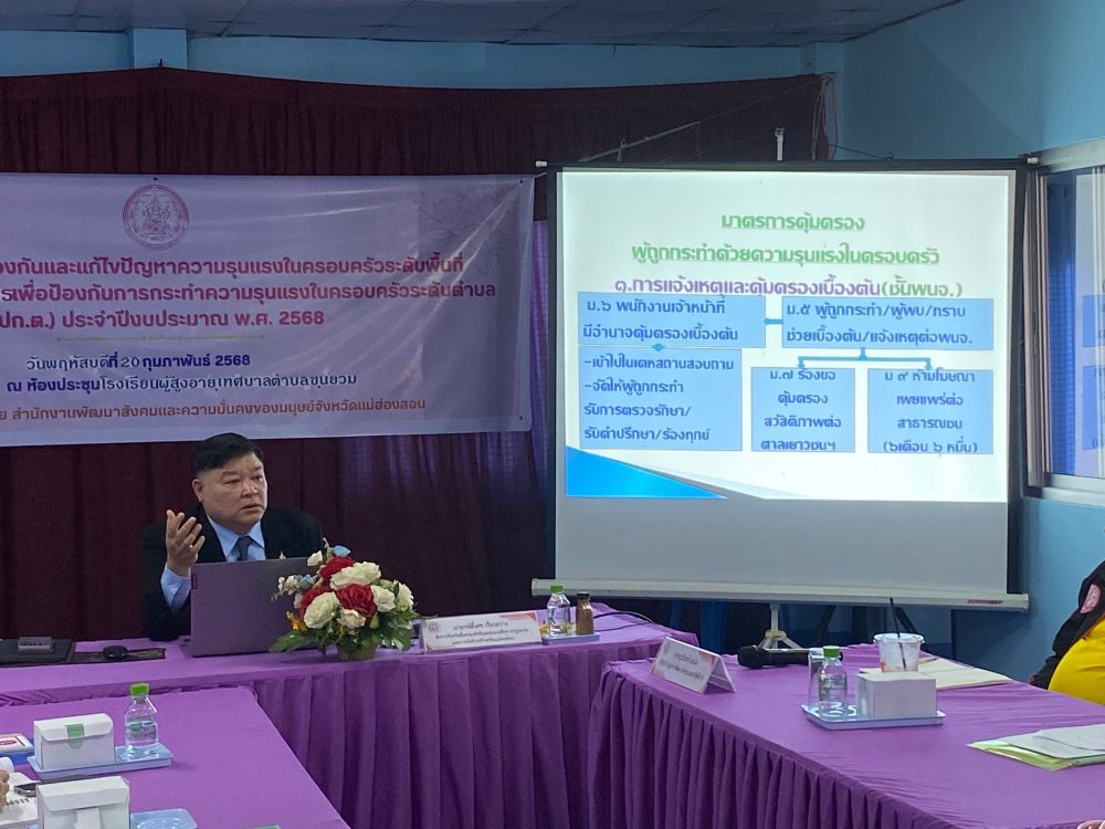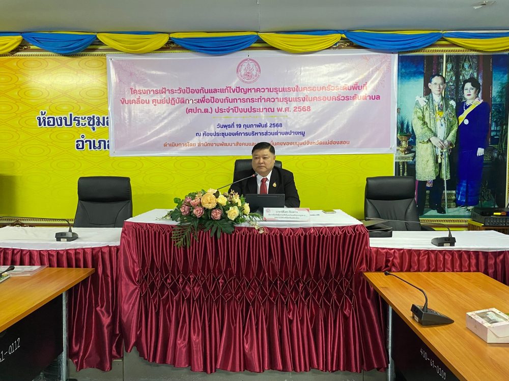 ระดับพื้นที่ขับเคลื่อน ศูนย์ปฏิบัติการเพื่อป้องกันการกระทำความรุนแรงในครอบครัวระดับตำบล (ศปก.ต.) ประจำปีงบประมาณ พ.ศ.๒๕๖๘ ร่วมกับสำนักงานพัฒนาสังคมและความมั่นคงของมนุษย์จังหวัดแม่ฮ่องสอน