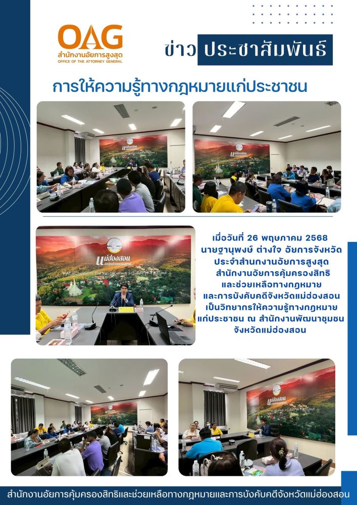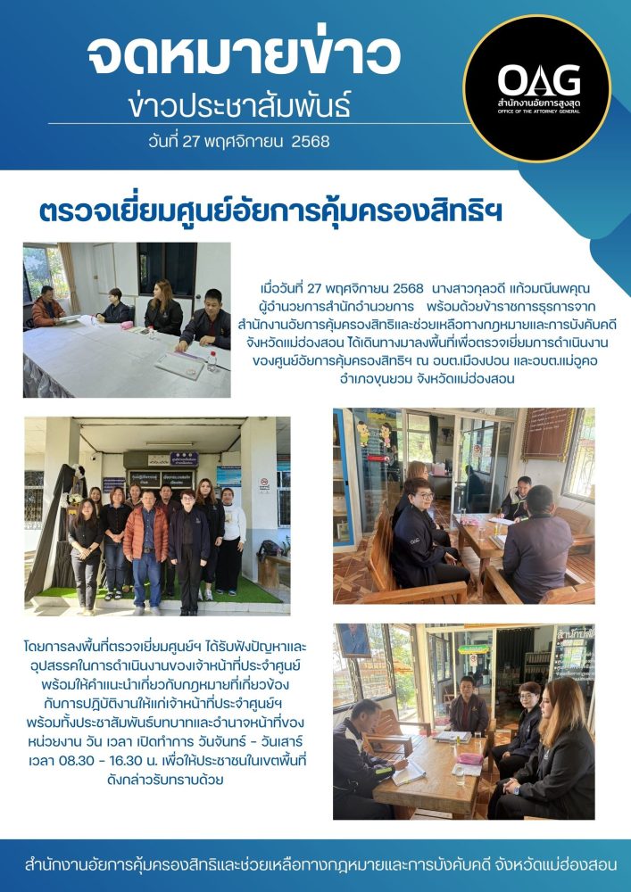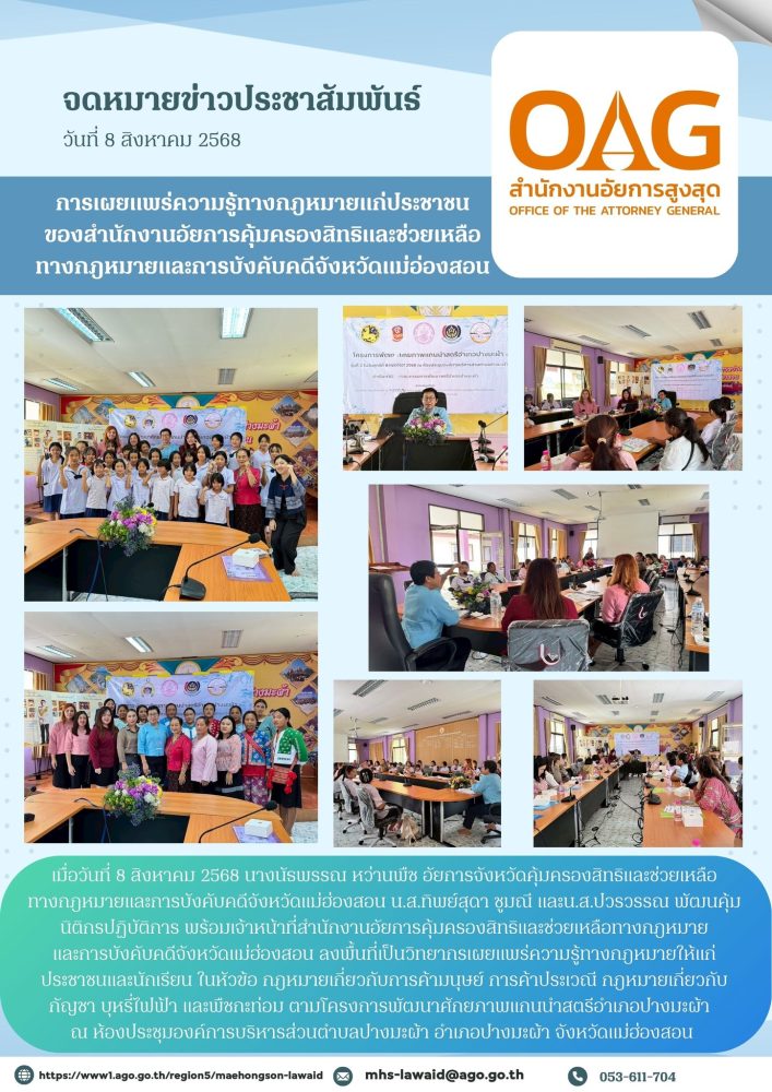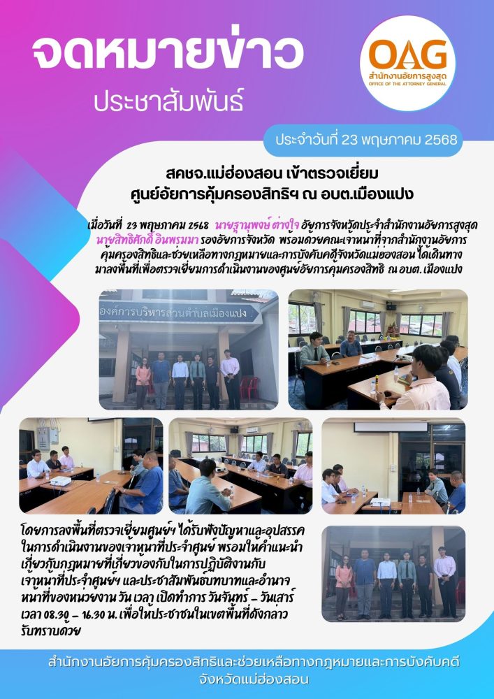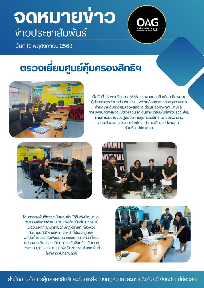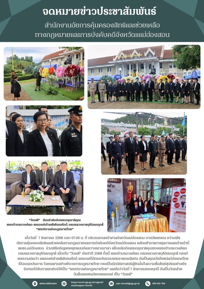 พร้อมกันนี้สำนักงานอัยการคุ้มครองสิทธิฯจังหวัดแม่ฮ่องสอน