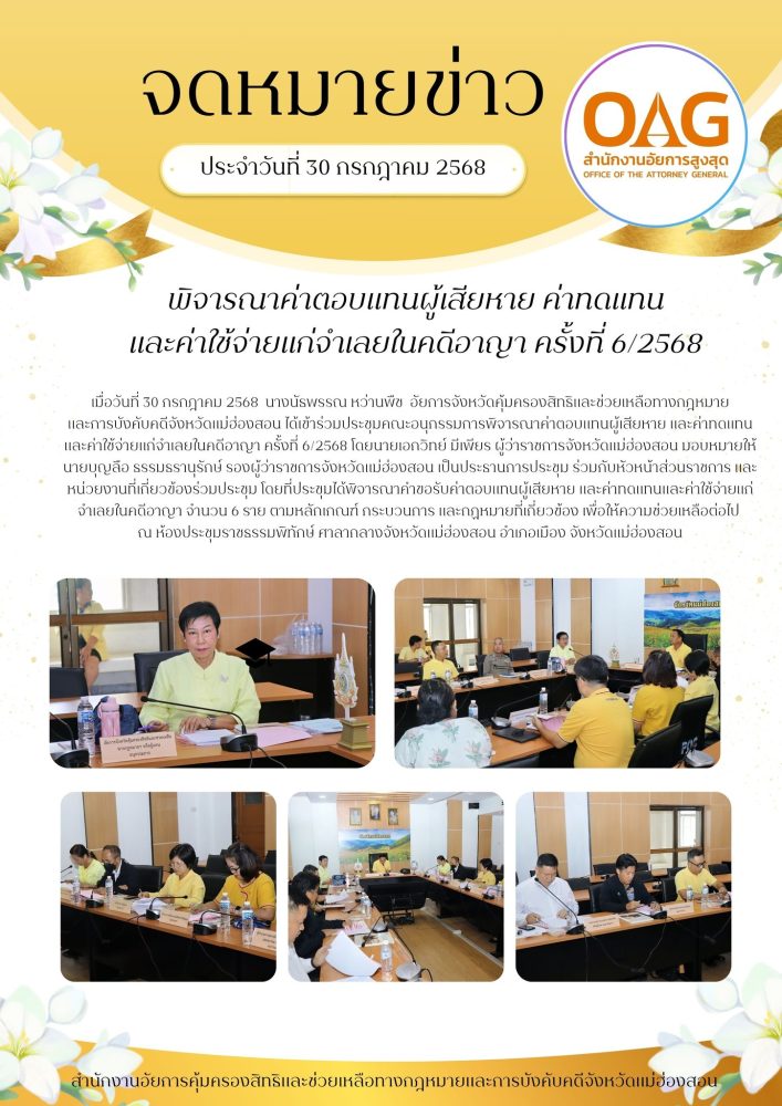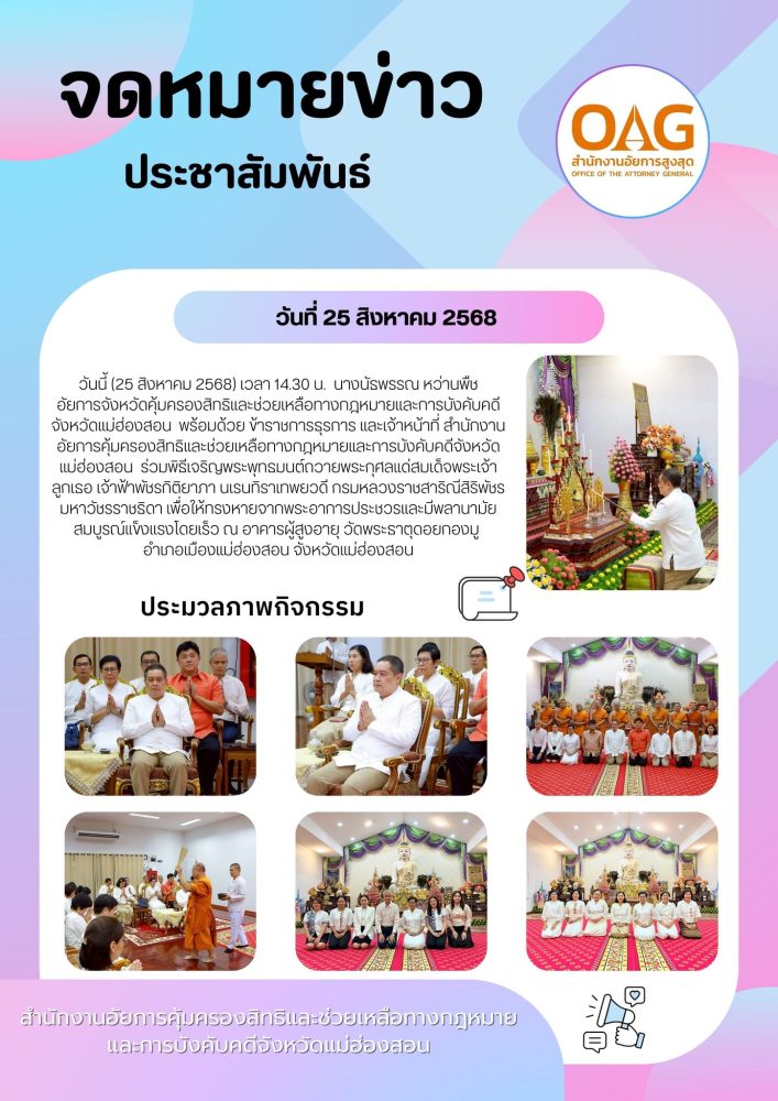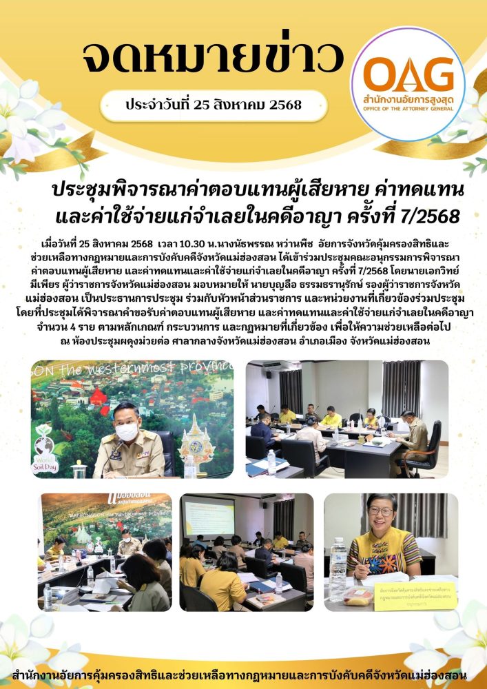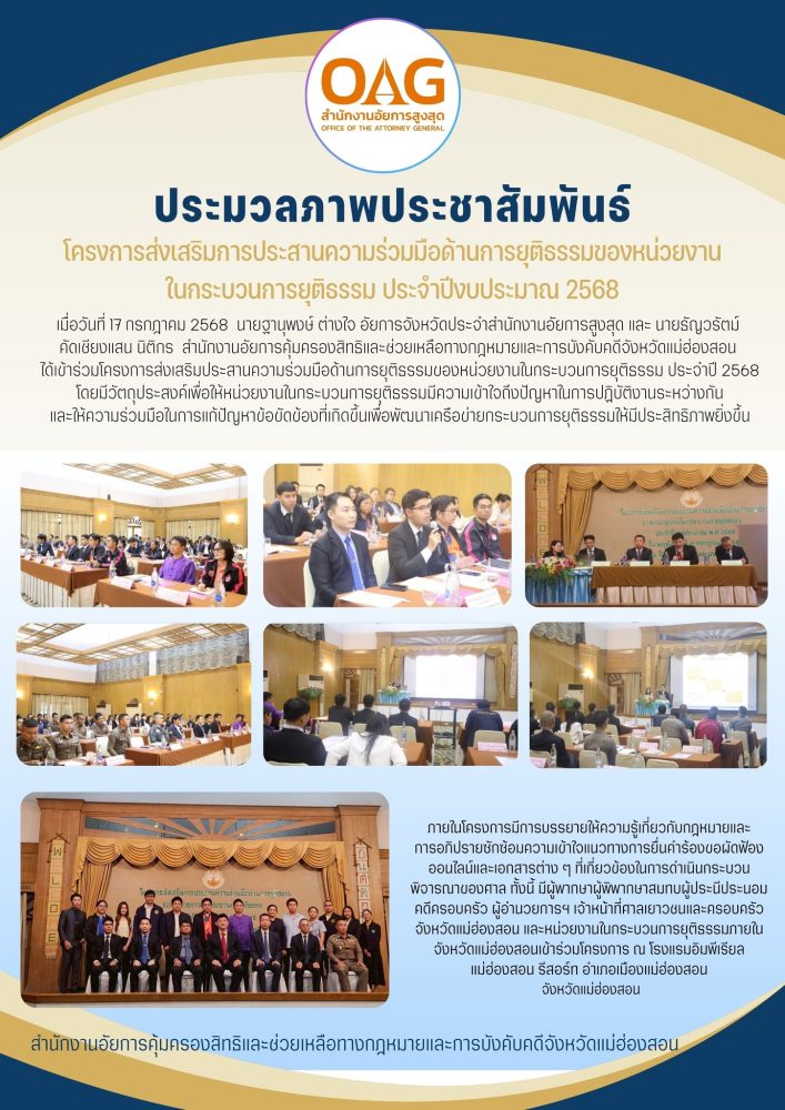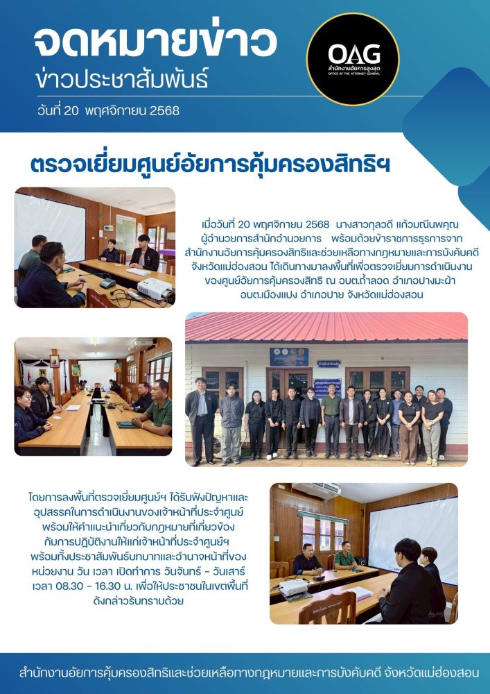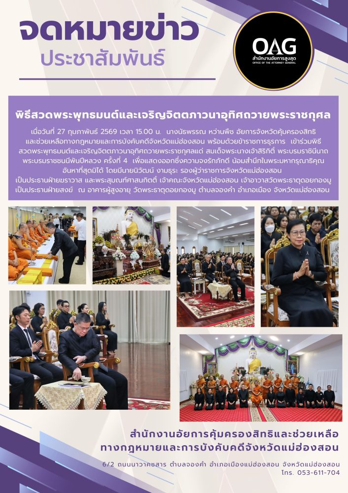 พร้อมกันนี้สำนักงานอัยการคุ้มครองสิทธิฯจังหวัดแม่ฮ่องสอน