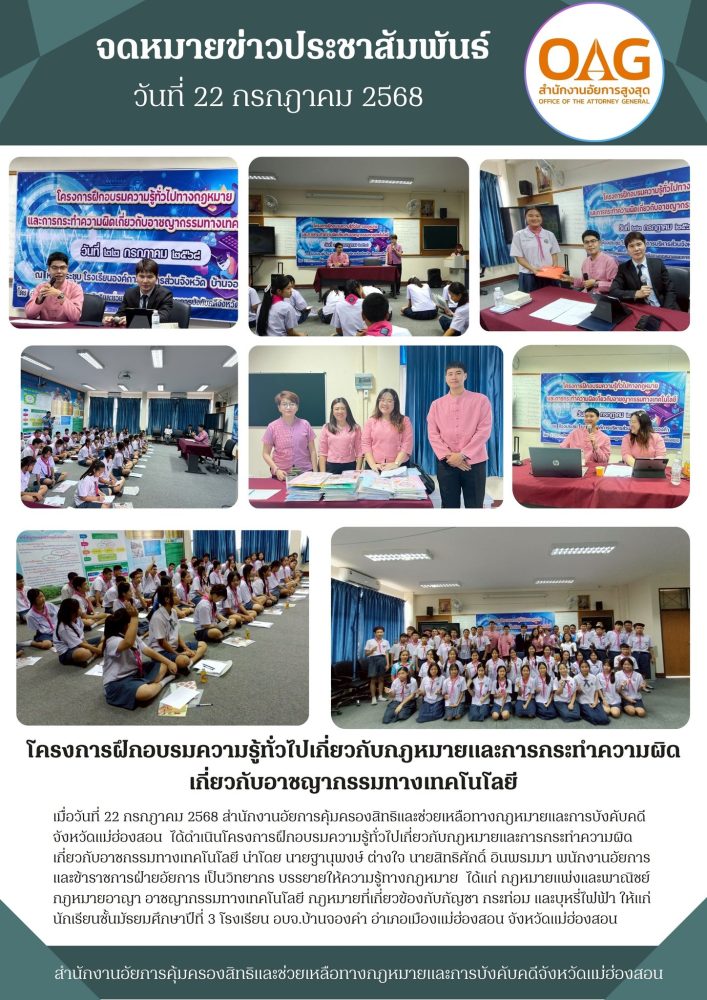 ได้จัดบรรยายฝึกอบรมความรู้เกี่ยวกับกฎหมายทั่วไปให้กับเด็กนักเรียน
