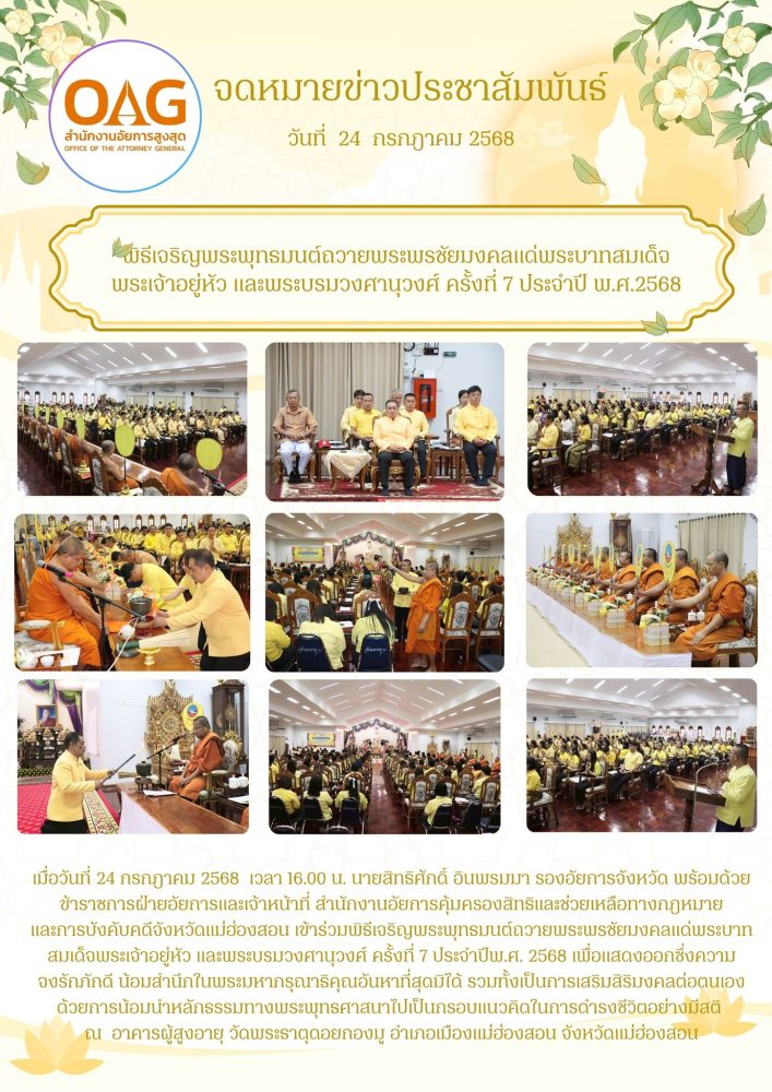 การบังคับคดี จังหวัดแม่ฮ่องสอน ร่วมพิธีเจริญพระพุทธมนต์เฉลิมพระเกียรติ