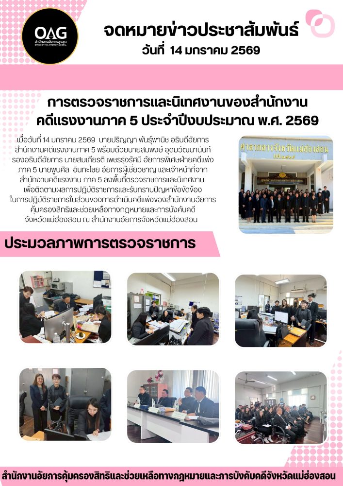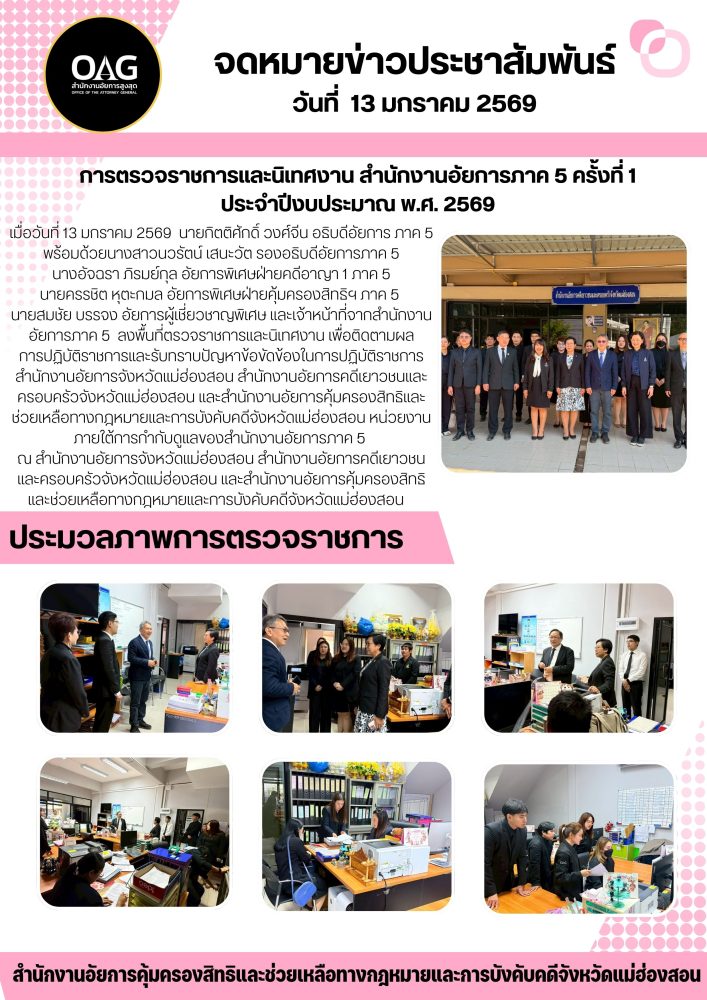 วันที่ ๑๔-๑๕ มกราคม ๒๕๖๘ อธิบดีอัยการภาค ๕ พร้อมคณะตรวจราชการ