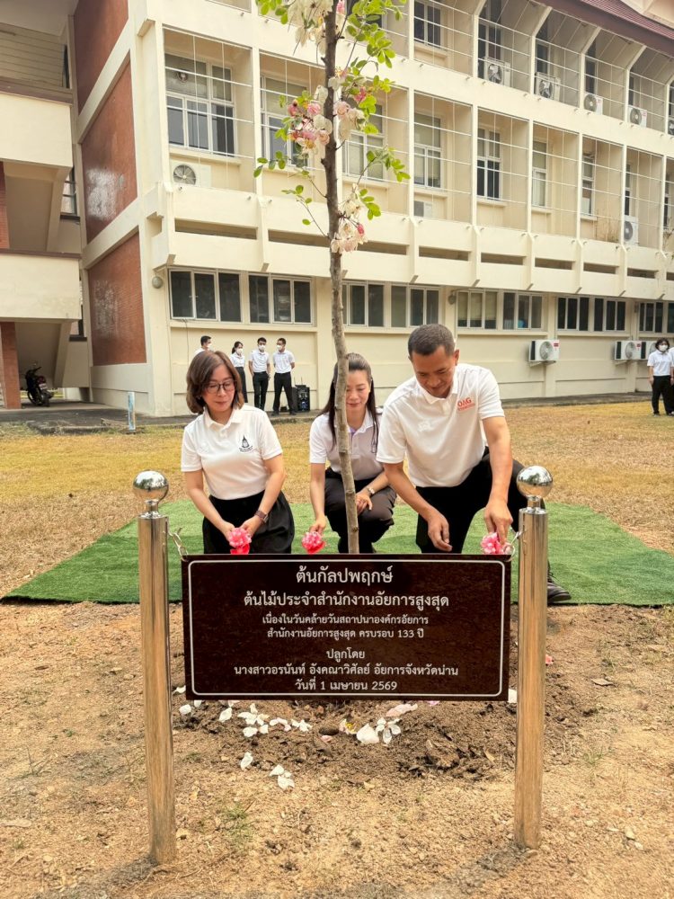ข้าราชการฝ่ายอัยการ และบุคลากรทุกคน ร่วมกันทำกิจกรรมปลูกต้นไม้ประจำสำนักงานอัยการสูงสุด (ต้นกัลปพฤกษ์) เนื่องในวันสถาปนาองค์กรอัยการครบรอบ 133 ปี ณ บริเวณสำนักงานอัยการจังหวัดน่าน ตำบลไชยสถาน อำเภอเมืองน่าน จังหวัดน่าน