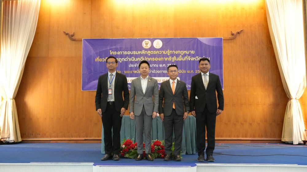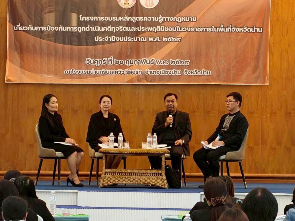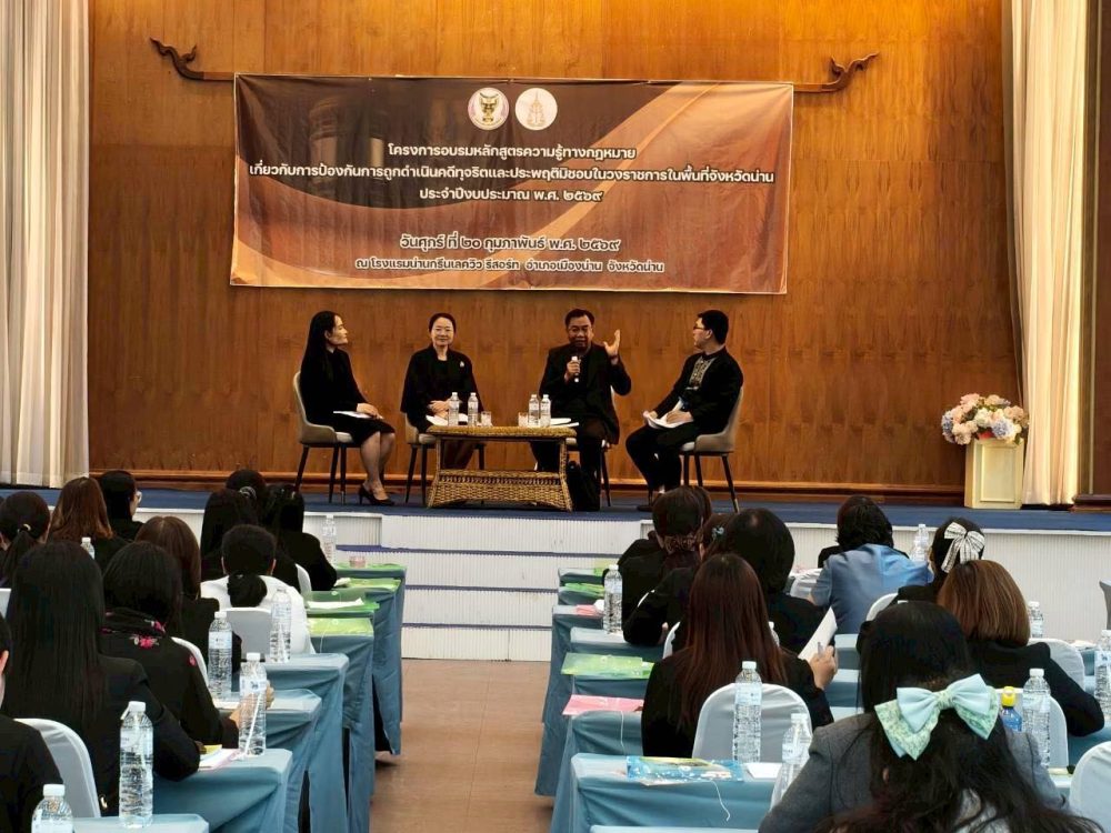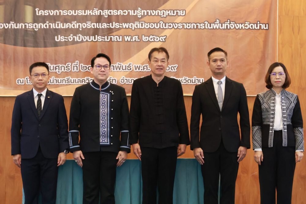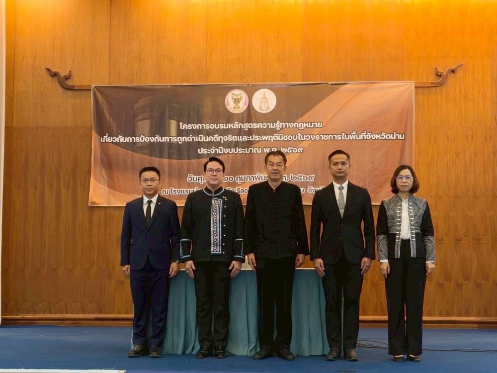 วันที่ 20 กุมภาพันธ์ 2569 สำนักงานอัยการคุ้มครองสิทธิและช่วยเหลือทางกฎหมายและการบังคับคดีจังหวัดน่าน ร่วมกับองค์การบริหารส่วนจังหวัดน่าน จัดโครงการอบรมหลักสูตรความรู้ทางกฎหมายเกี่ยวกับการป้องกันการถูกดำเนินคดีทุจริตและประพฤติมิชอบ