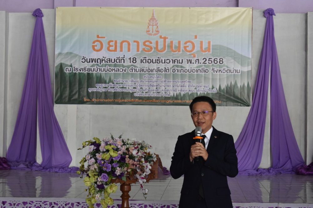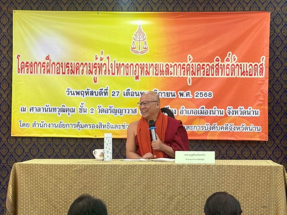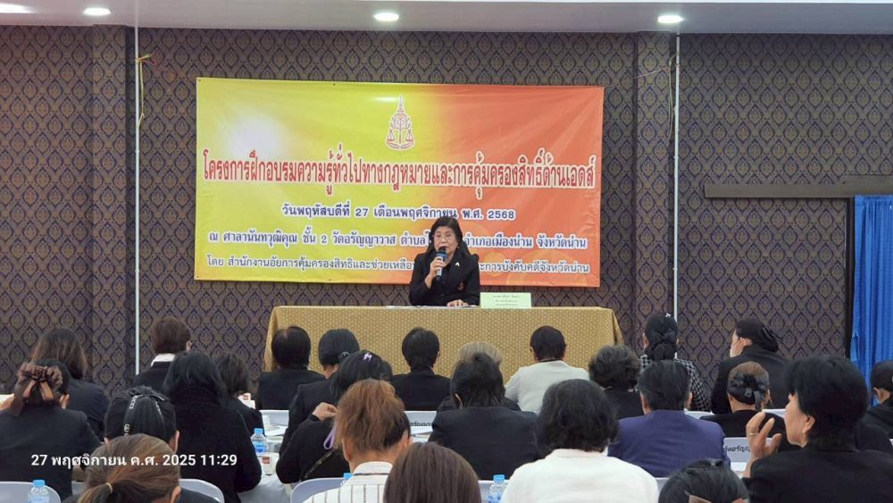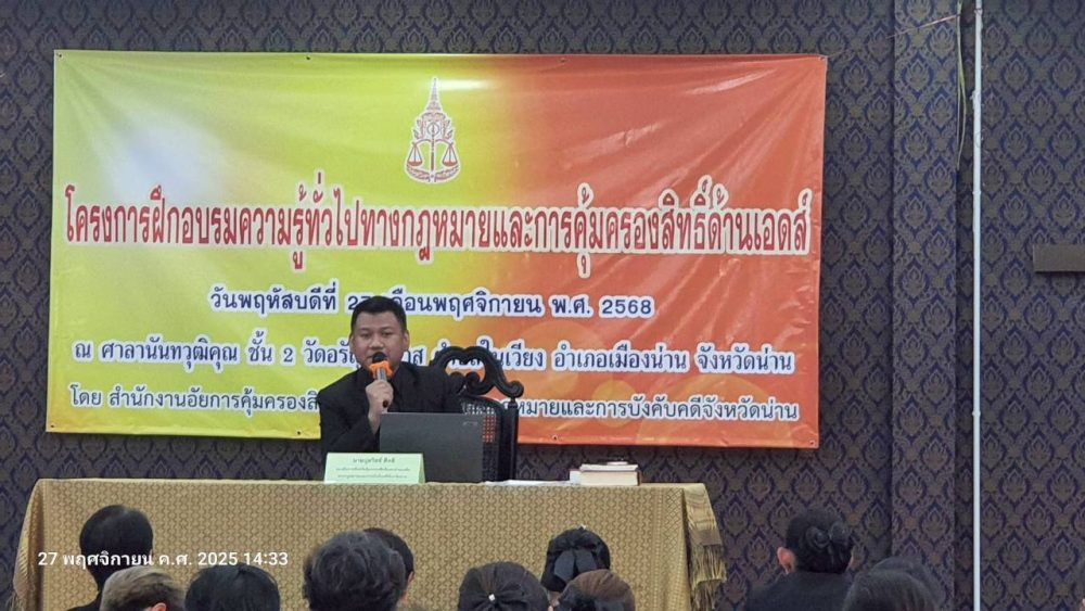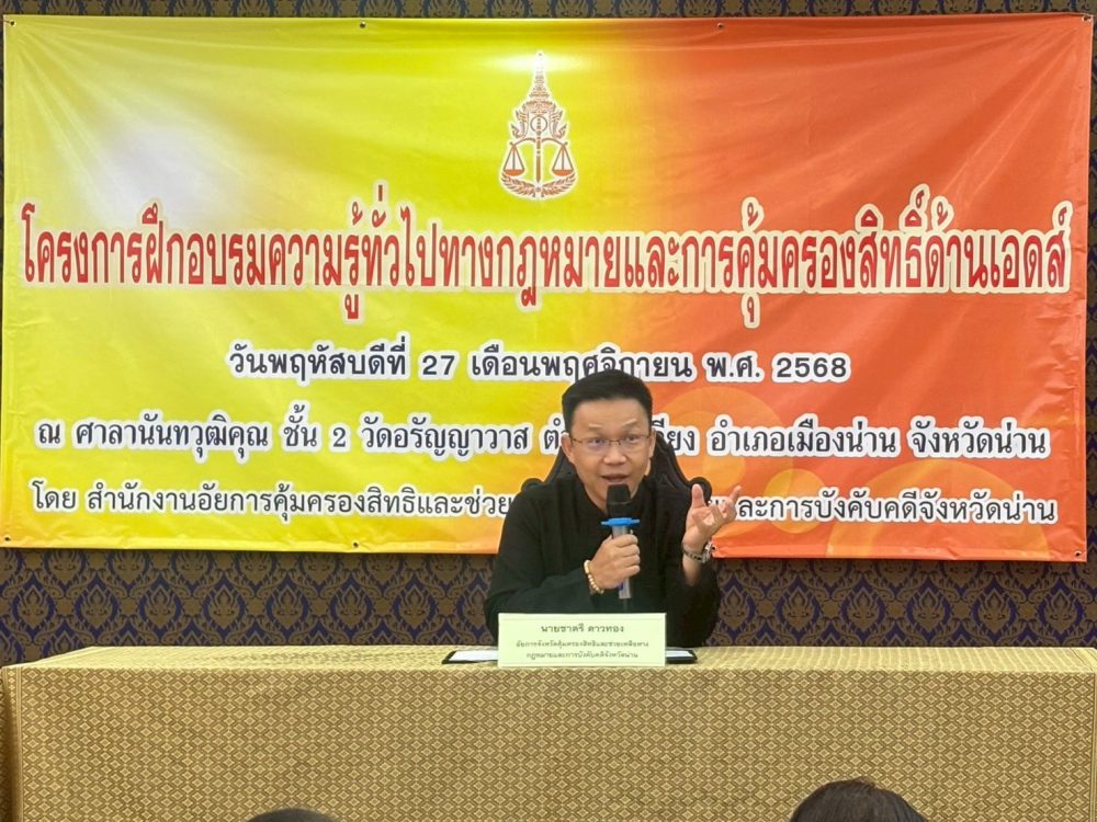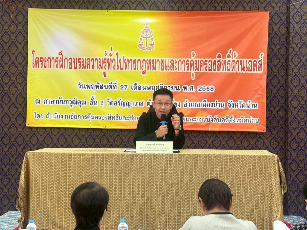 วันที่ 17 พฤศจิกายน 2568 สำนักงานอัยการคุ้มครองสิทธิและช่วยเหลือทางกฎหมายและการบังคับคดีจังหวัดน่าน โดย นางสาวปานภาวี ยะทิพย์ ผู้อำนวยการสำนักอำนวยการ สำนักงานอัยการคุ้มครองสิทธิและช่วยเหลือทางกฎหมายและการบังคับคดีจังหวัดน่าน